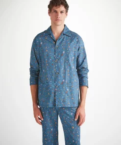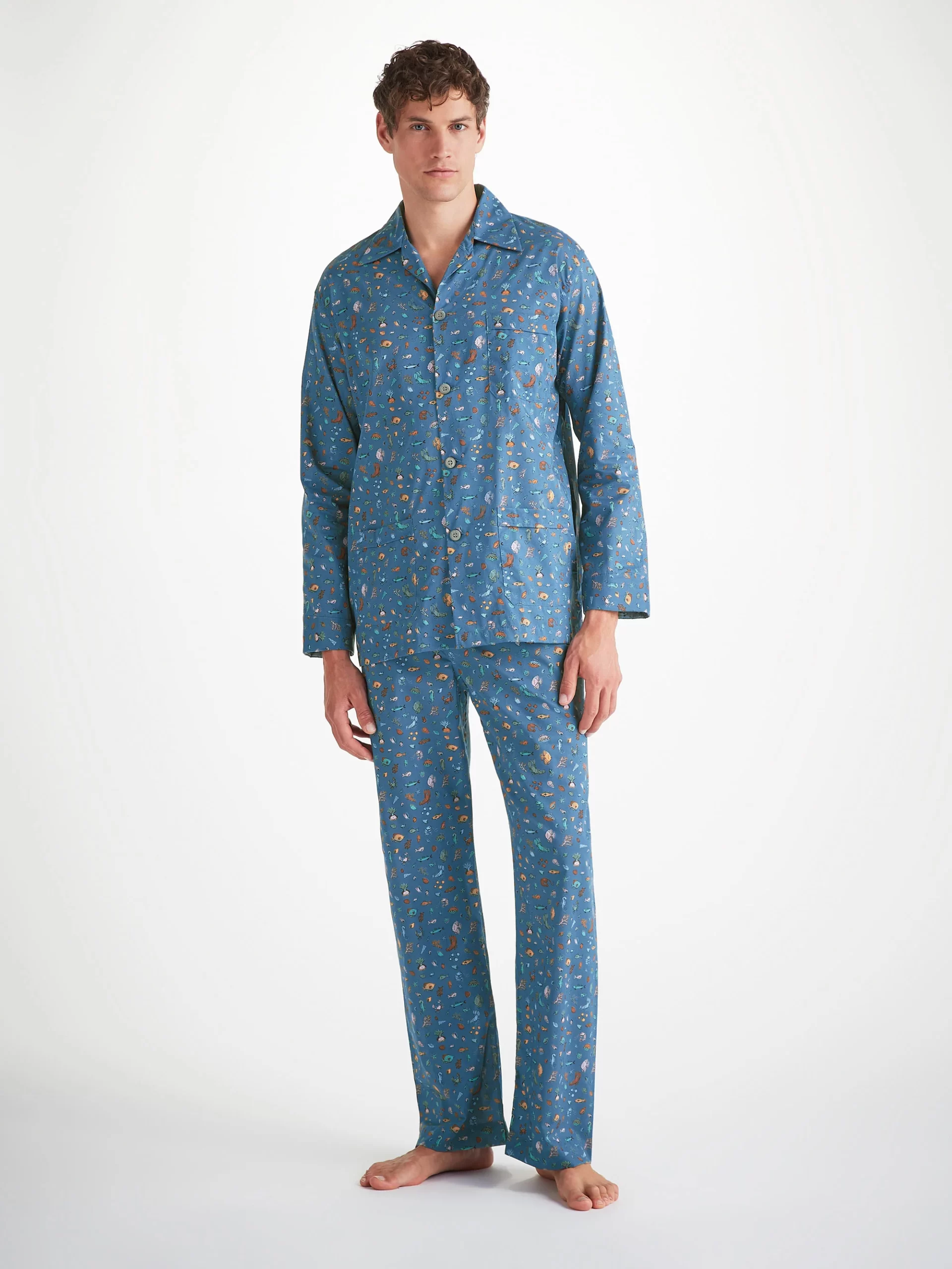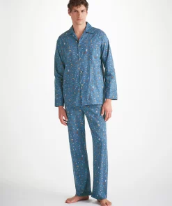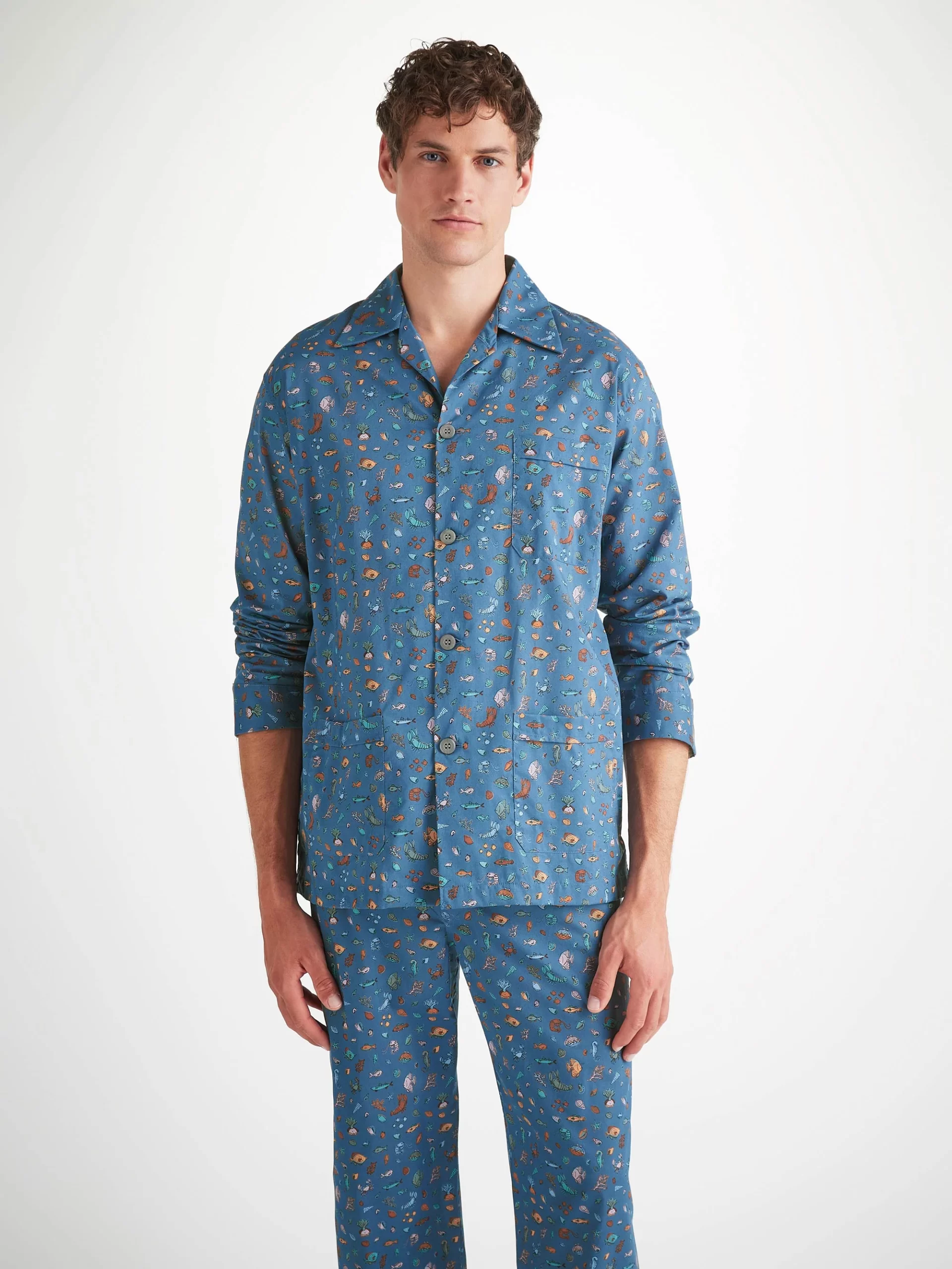 DEREK ROSE Men’s Classic Fit Pajamas Cotton Batiste Blue Sea Friends Print Mid Blue | MENS- Pajamas
