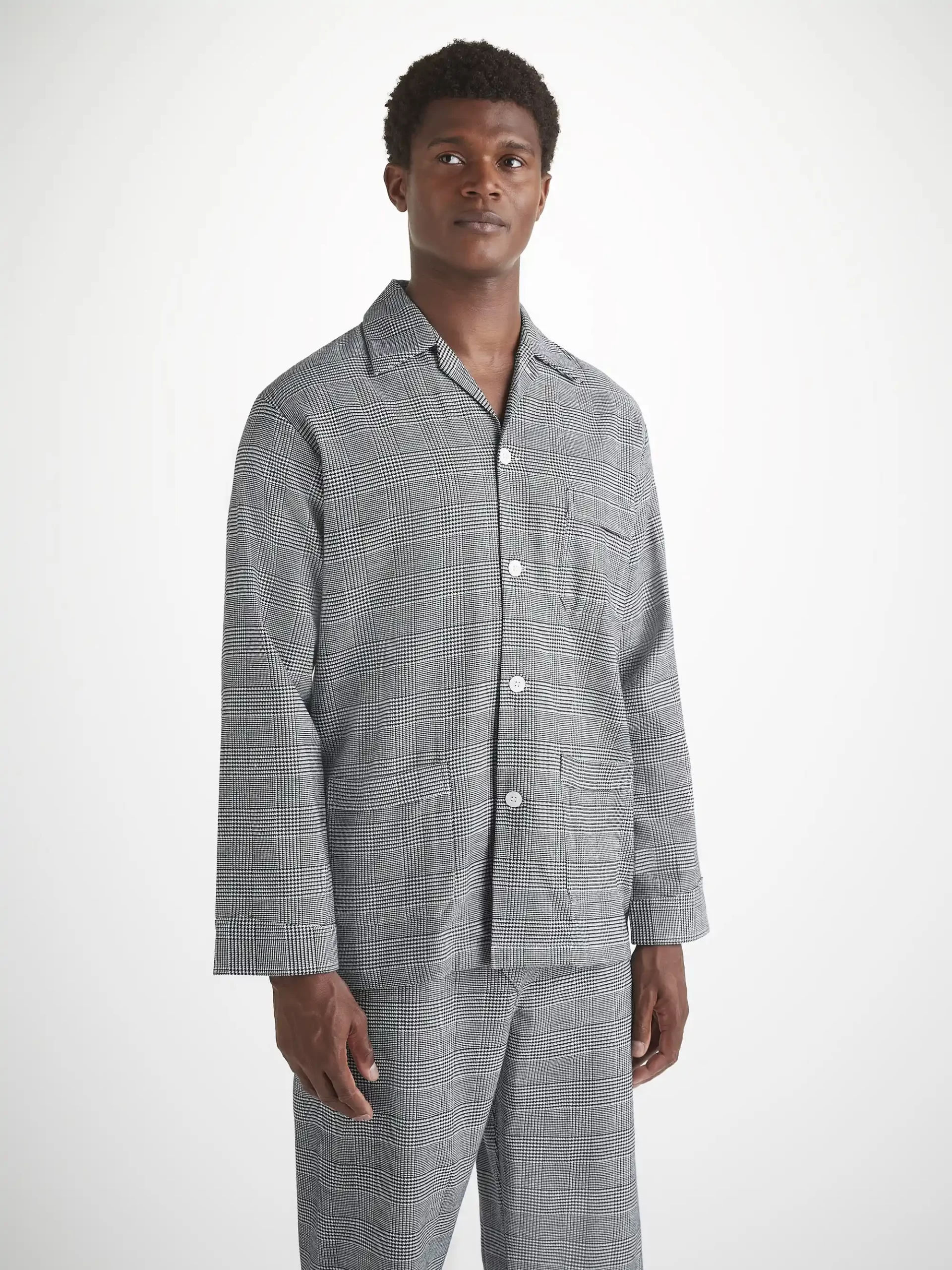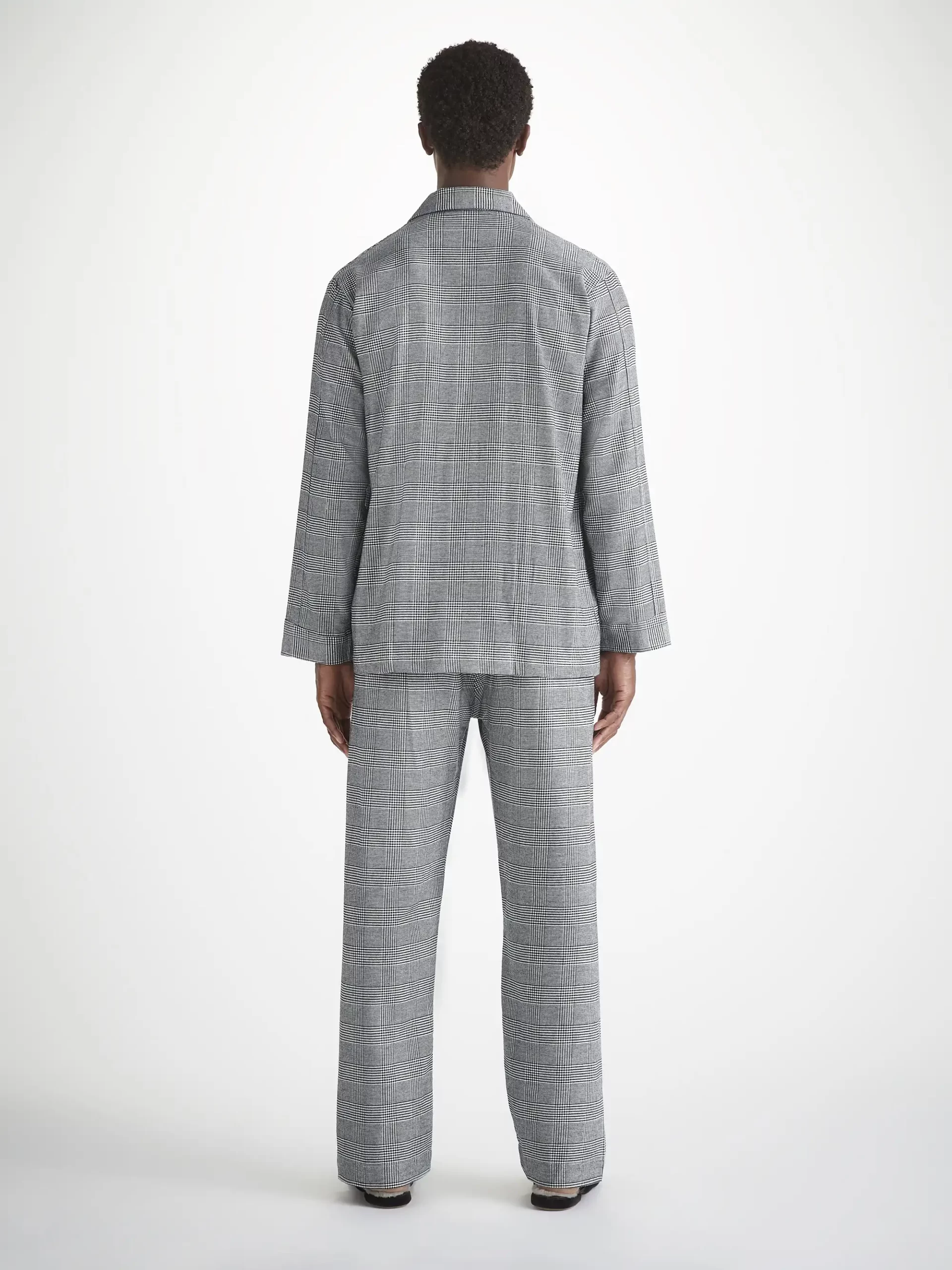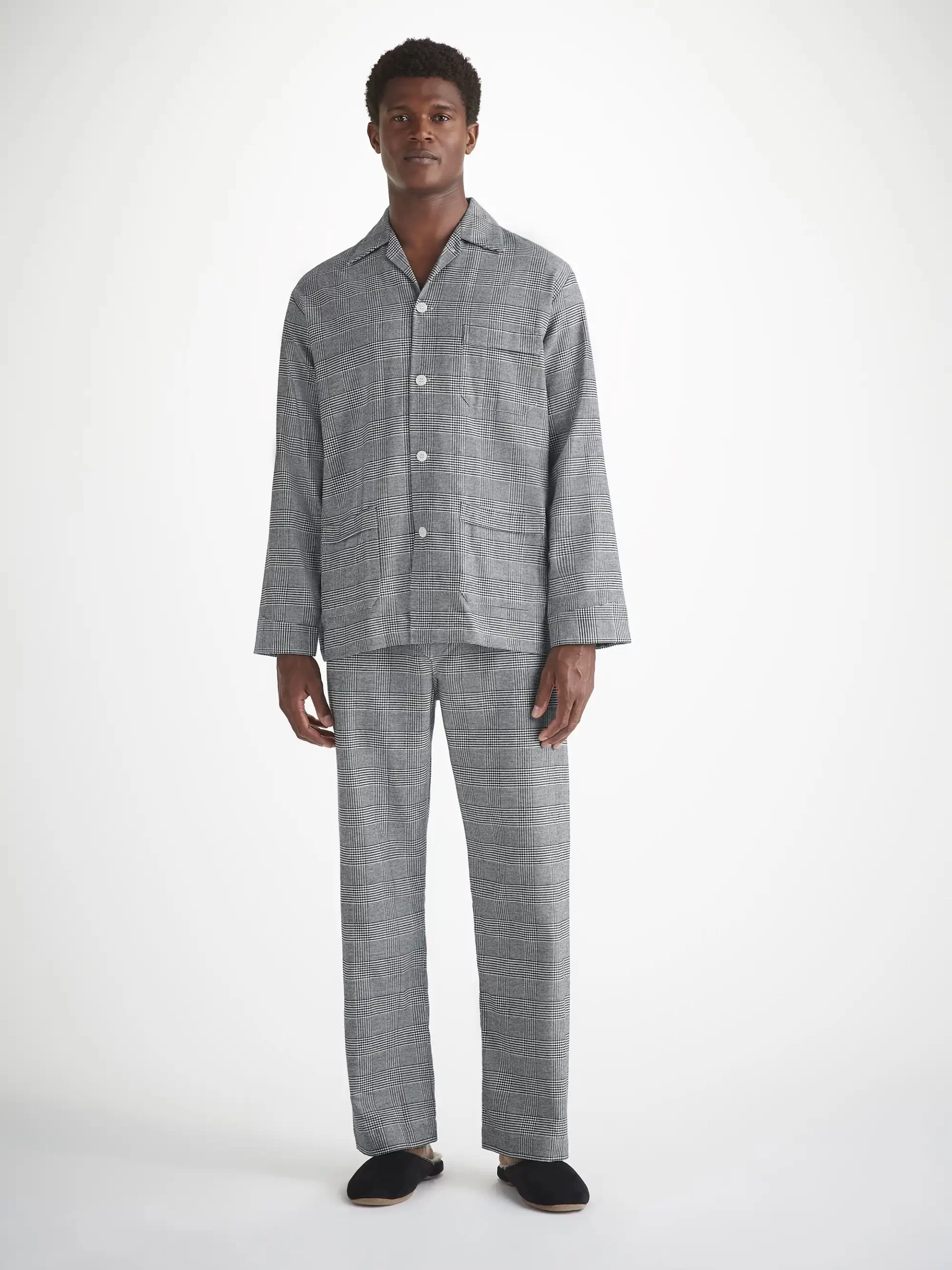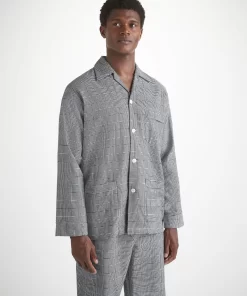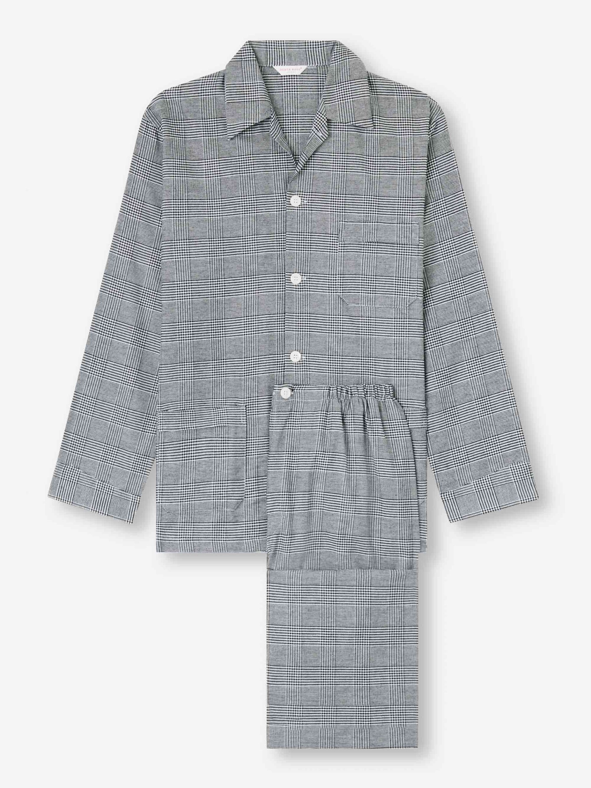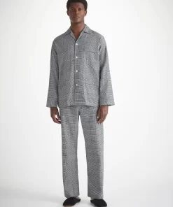 DEREK ROSE Men’s Classic Fit Pajamas Kelburn 42 Brushed Cotton Black Black | MENS- Pajamas