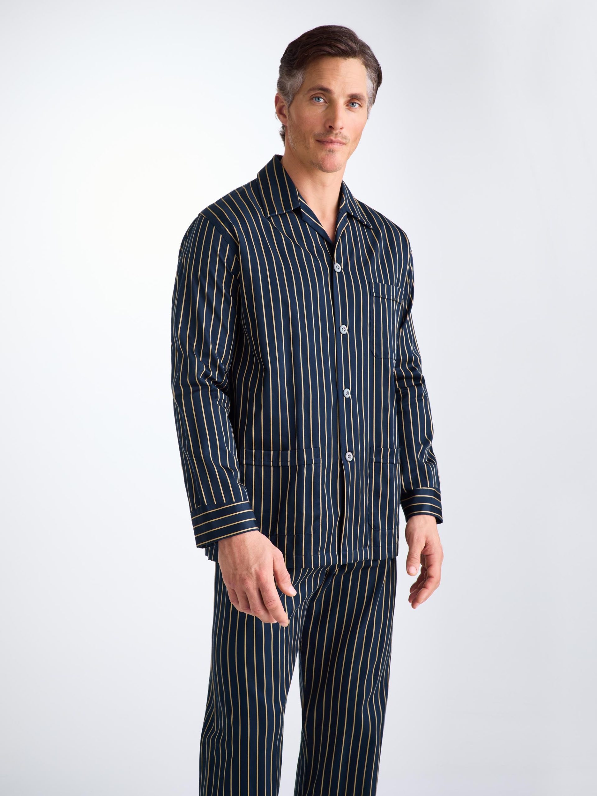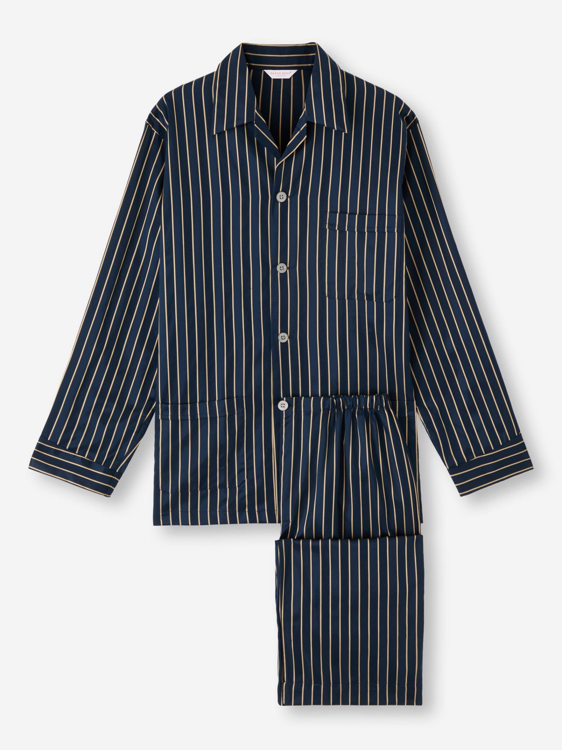 Made from 100% crisp, mid-weight cotton, navy and gold stripes cover this set. With a soft and cooling finish, the pure cotton Royal 224 fabric is a dream to lounge and sleep in.