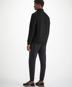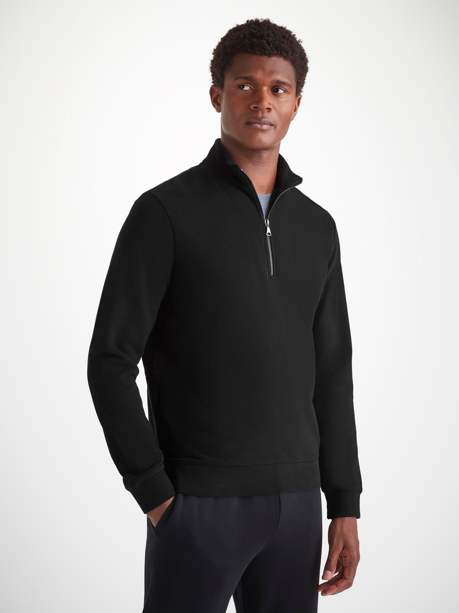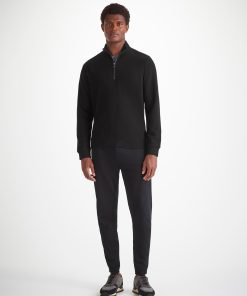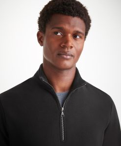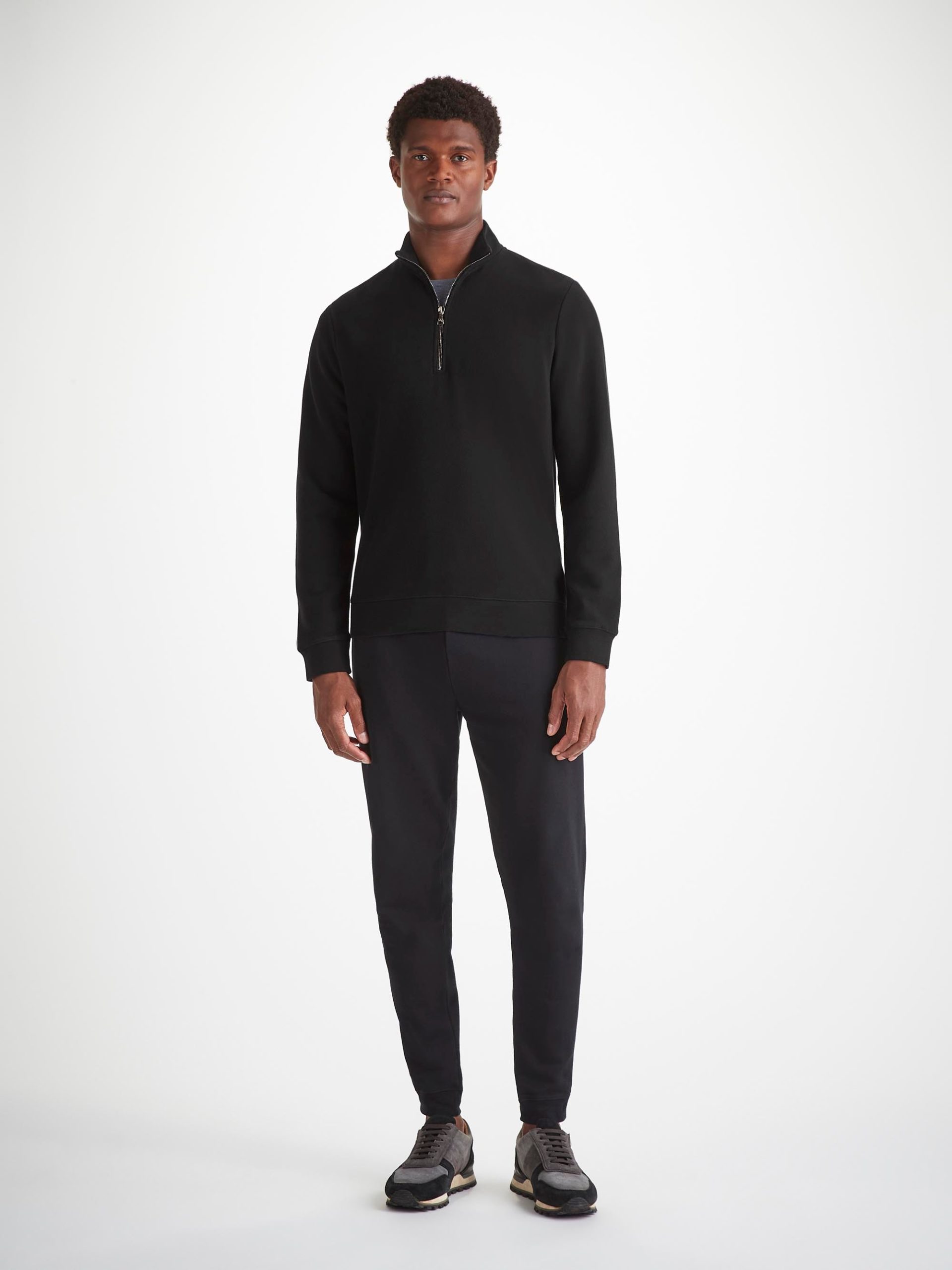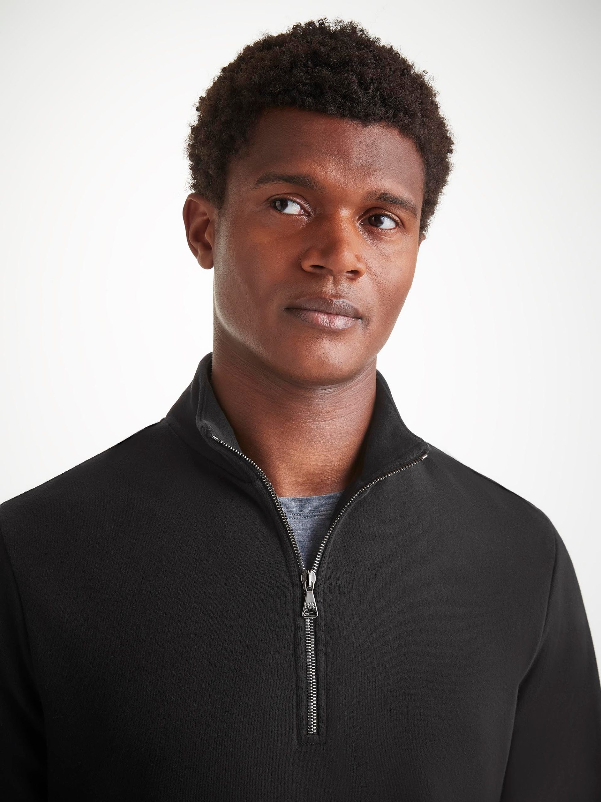 DEREK ROSE Men’s Half-Zip Pullover Quinn Cotton Modal Black Black | MENS- Gifts for Him