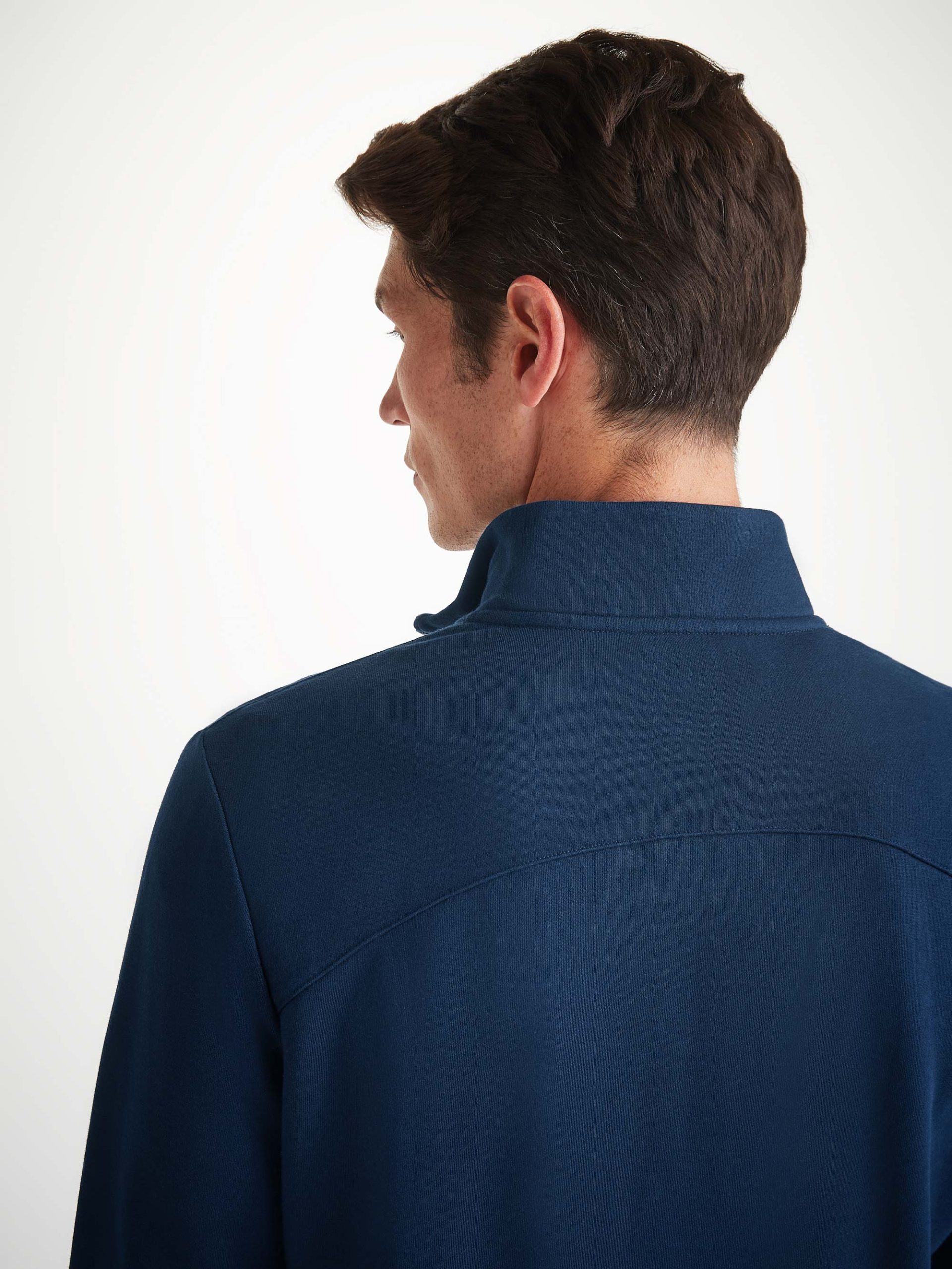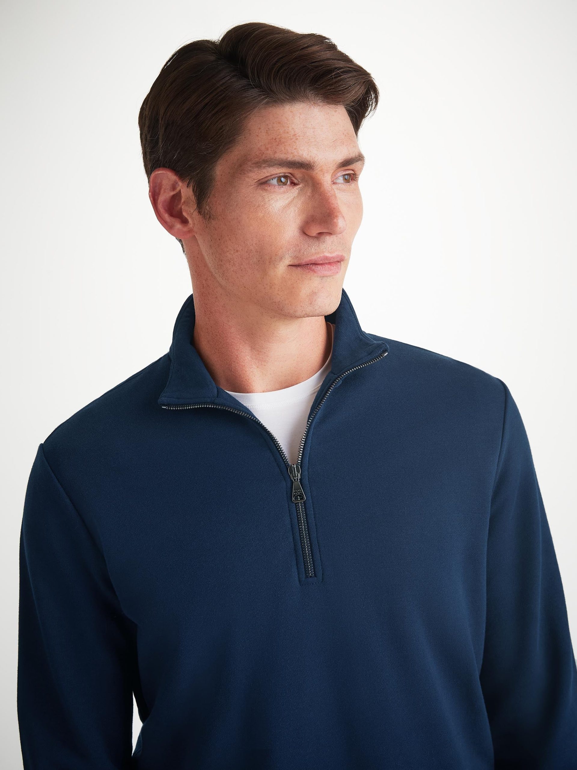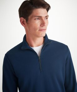 DEREK ROSE Men’s Half-Zip Pullover Quinn Cotton Modal Navy Navy | MENS- Gifts for Him