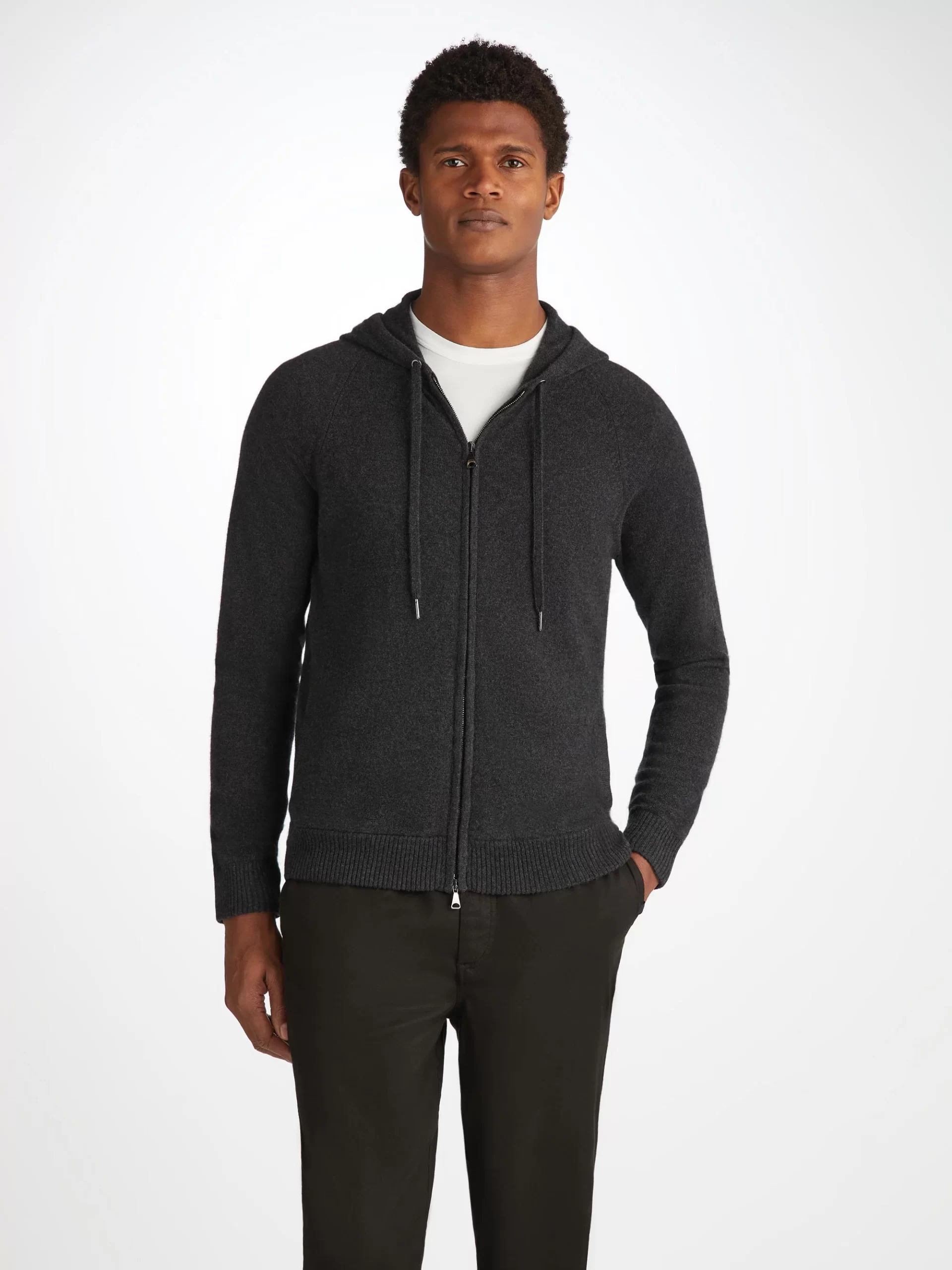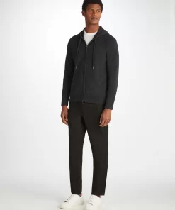 DEREK ROSE Men’s Hoodie Finley Cashmere Charcoal Charcoal | MENS- Gifts for Him