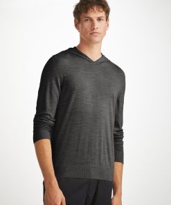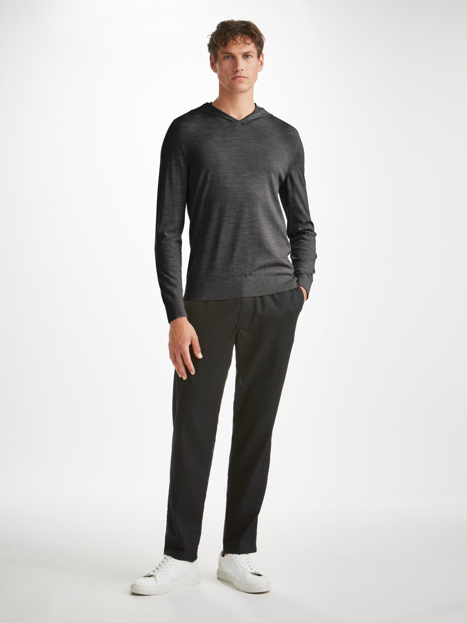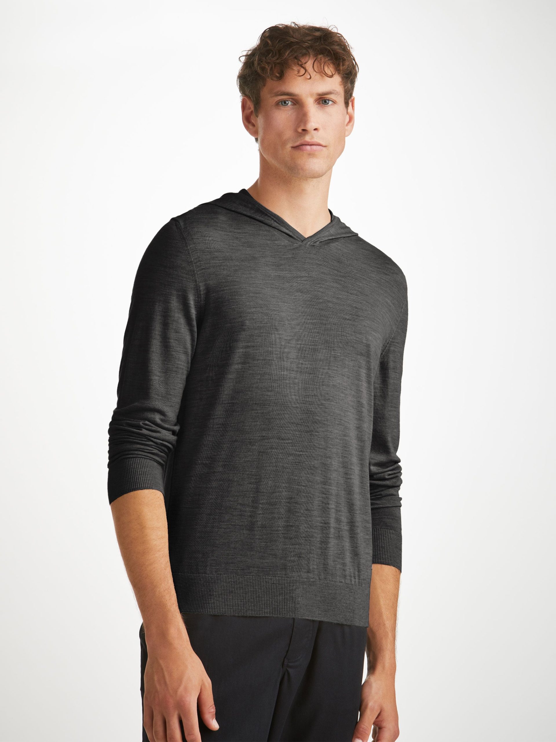 Designed with 100% merino wool, our Orson charcoal hoodie has been created with a ribbed neckline and cuffs as well as a practical hood.