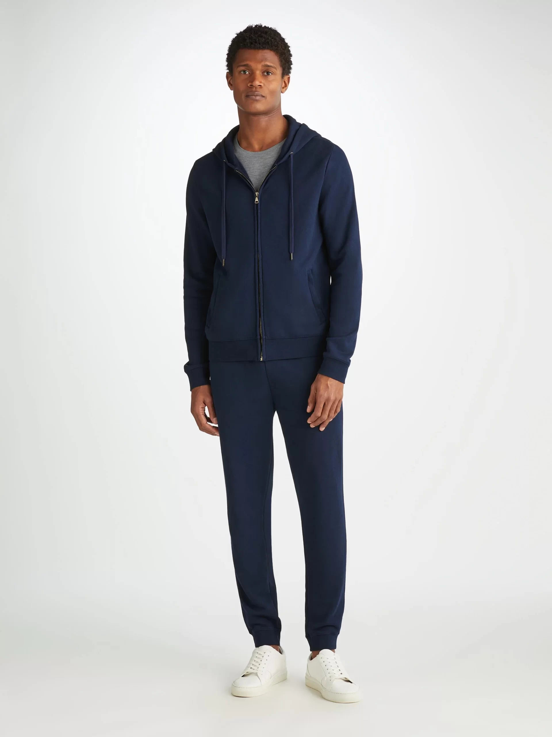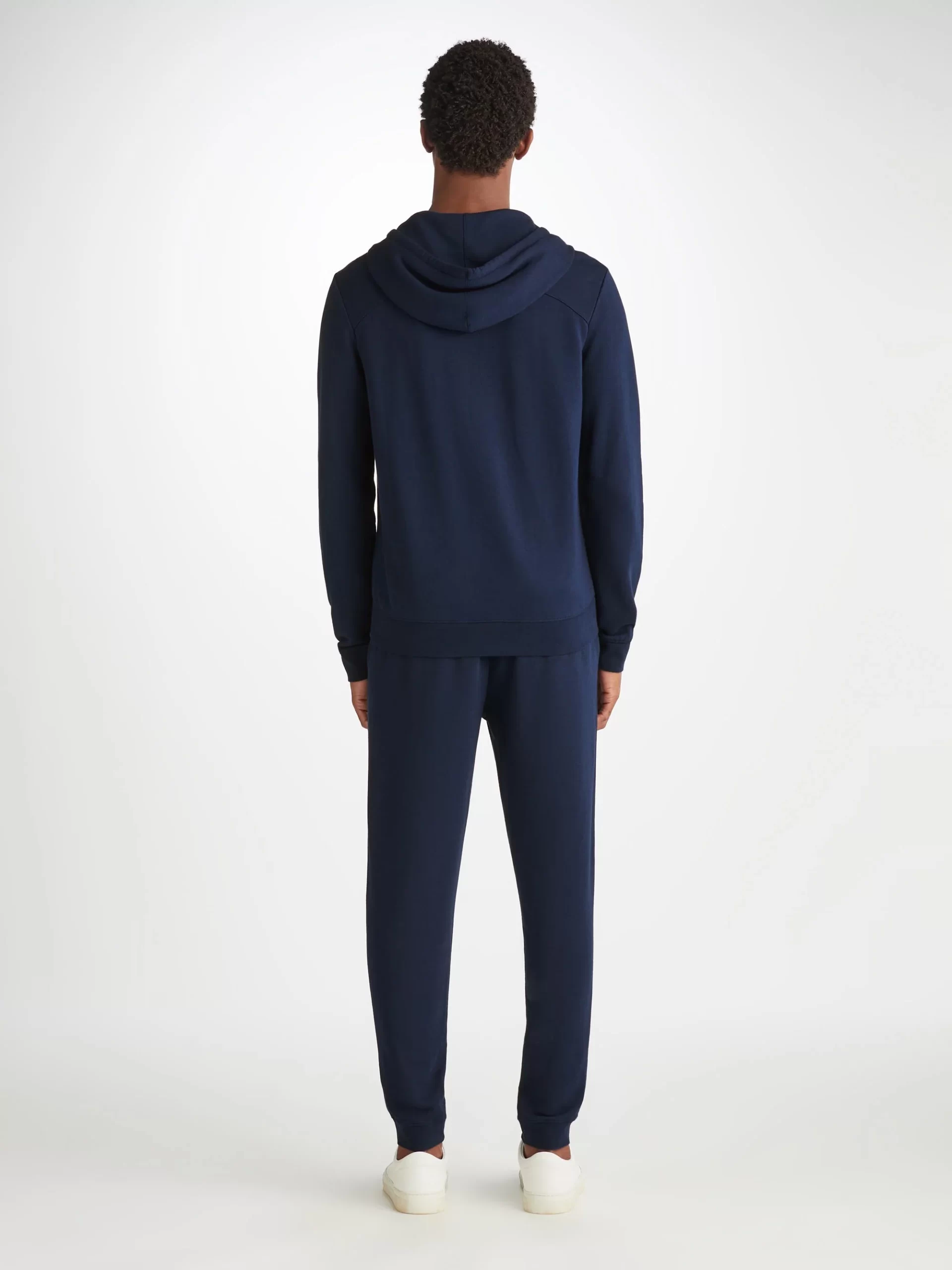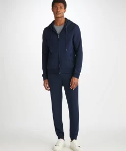 DEREK ROSE Men’s Hoodie Quinn Cotton Modal Navy Navy | MENS- Best Sellers