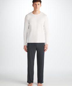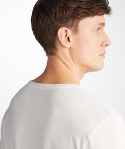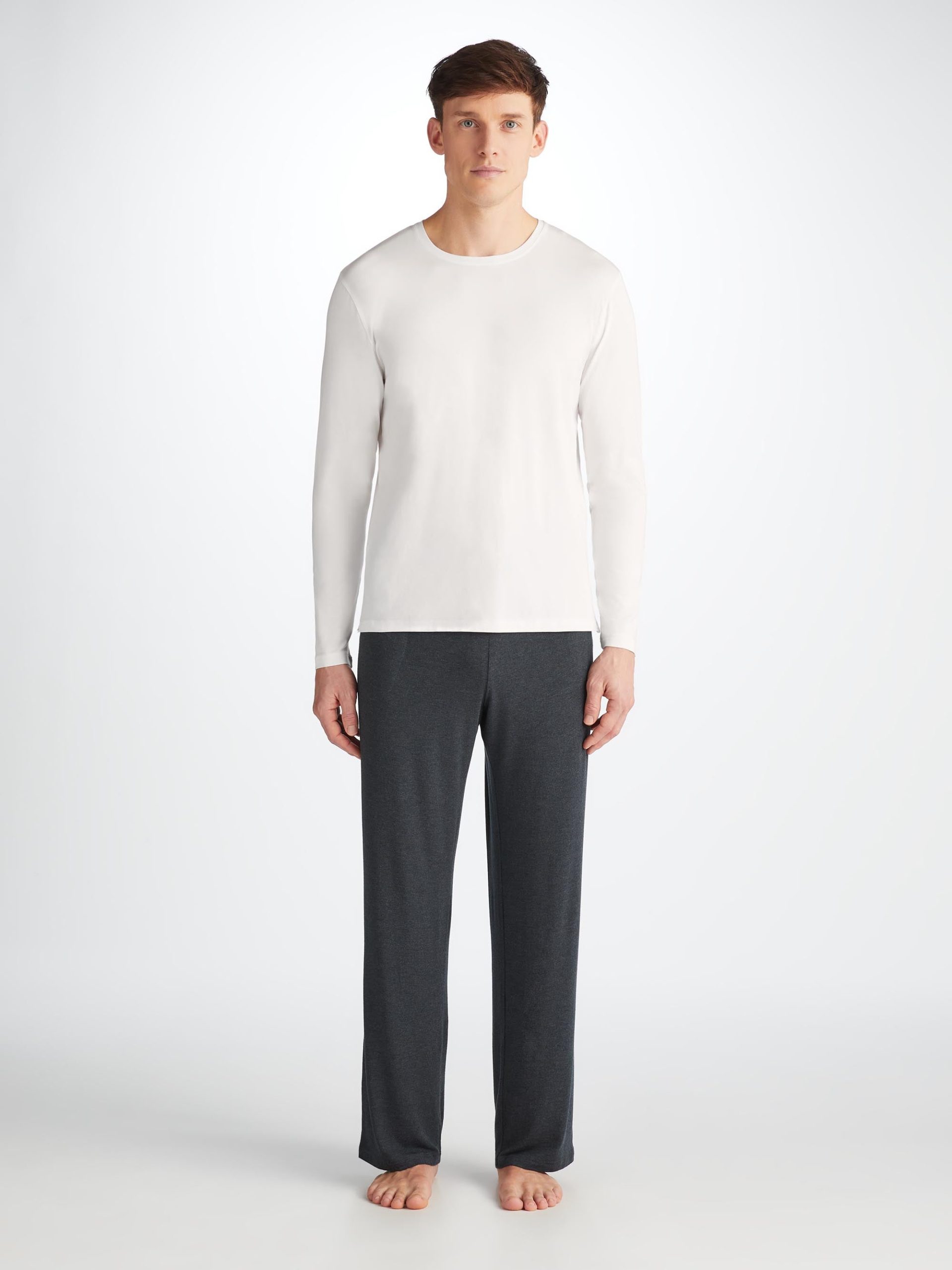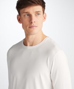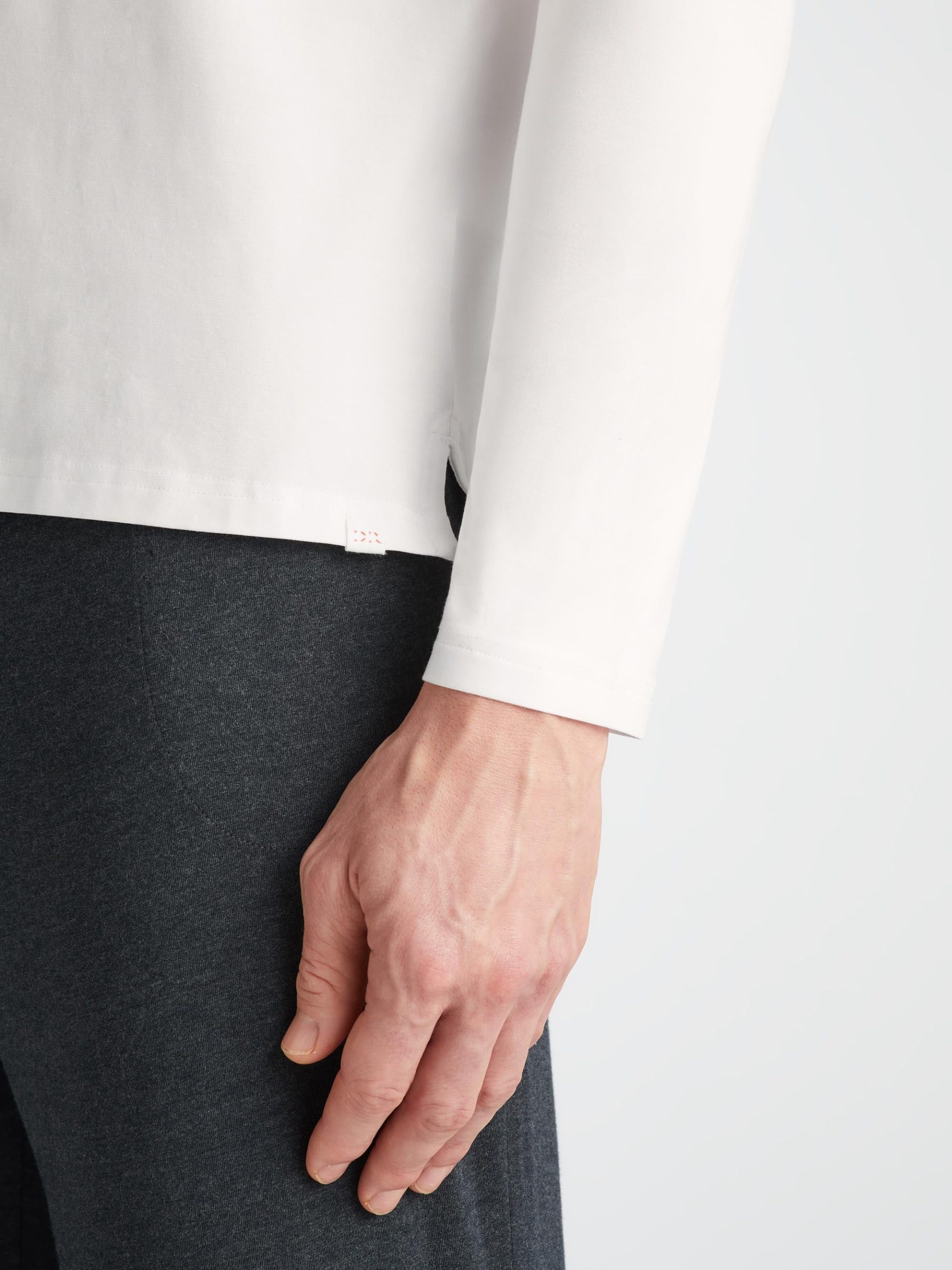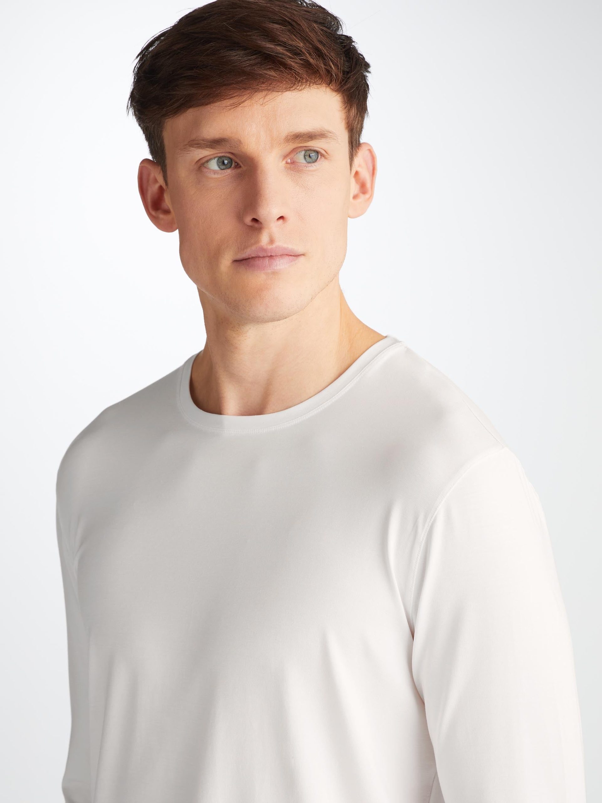 DEREK ROSE Men’s Long Sleeve T-Shirt Basel Micro Modal Stretch White White | MENS- Best Sellers