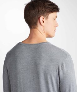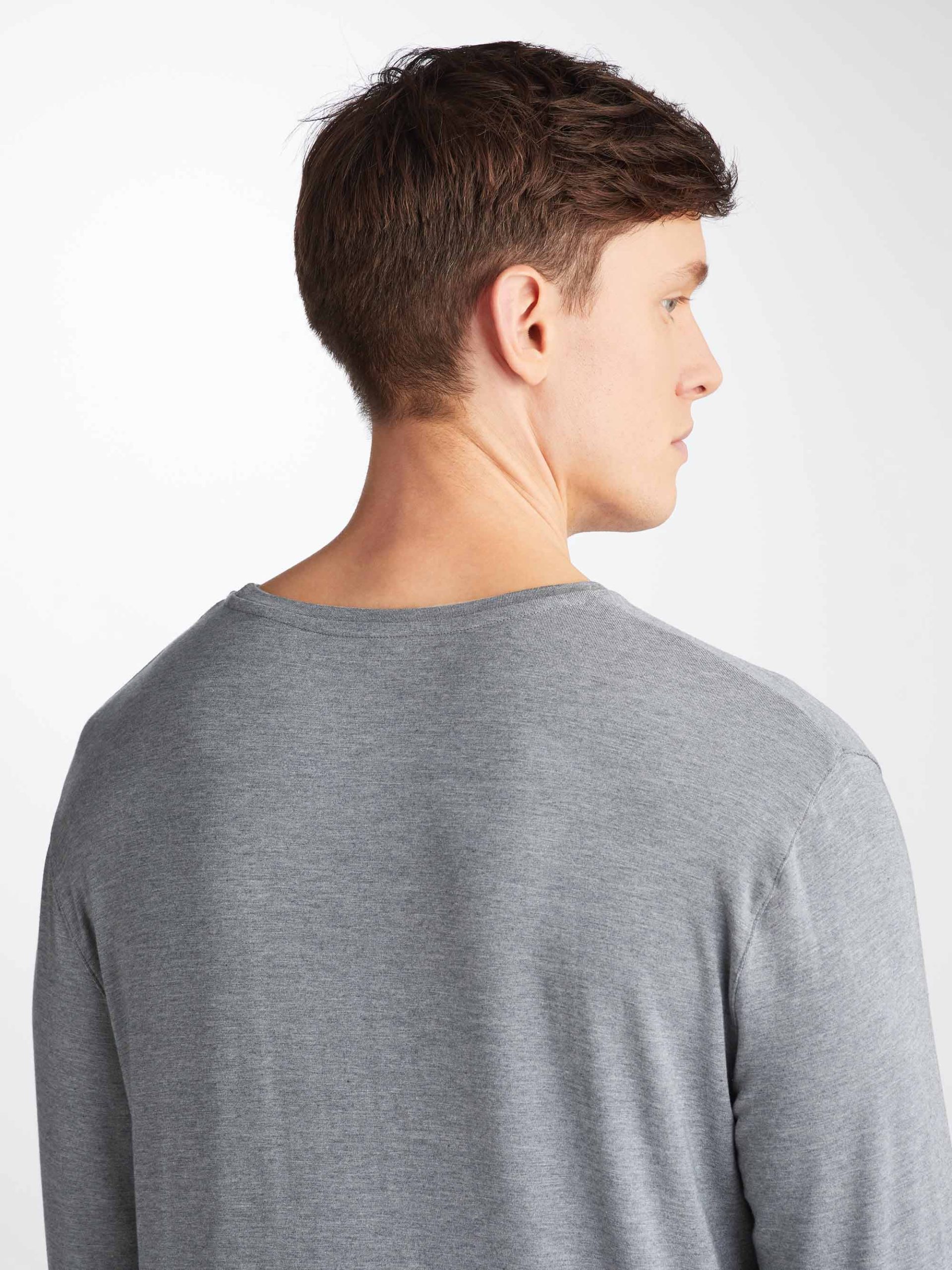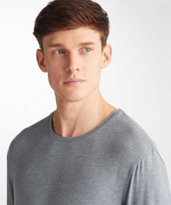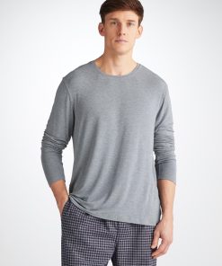 DEREK ROSE Men’s Long Sleeve T-Shirt Marlowe Micro Modal Stretch Charcoal Charcoal | MENS- Best Sellers