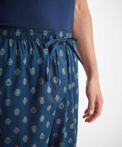 Stylish, yet practical our naval ship’s badges print men’s lounge trousers in navy feature a combined elastic and fabric tied waist for a comfortable fit. Even better, we’ve included two inset side pockets to keep your phone and valuables close by whilst you’re lounging.
