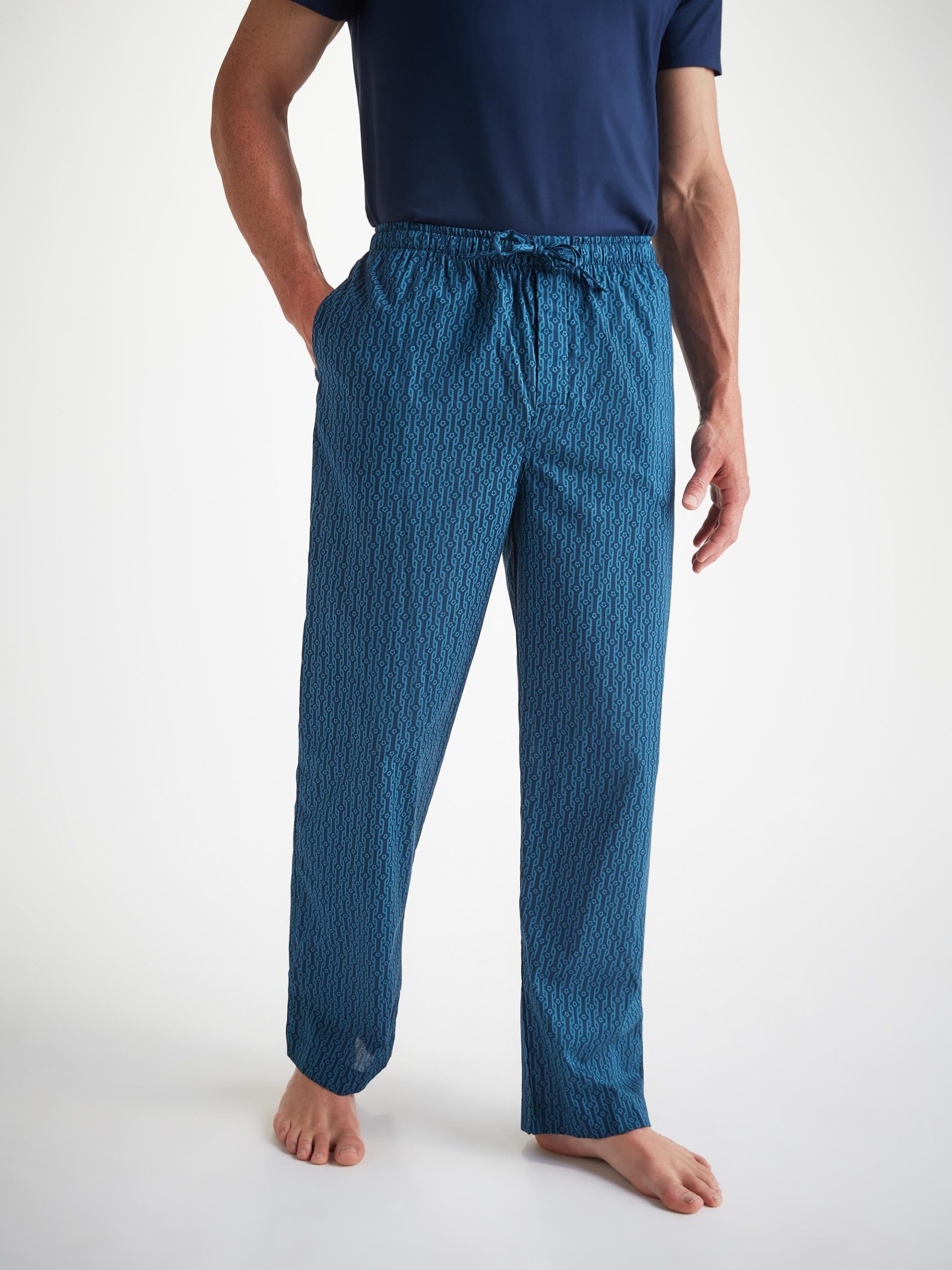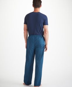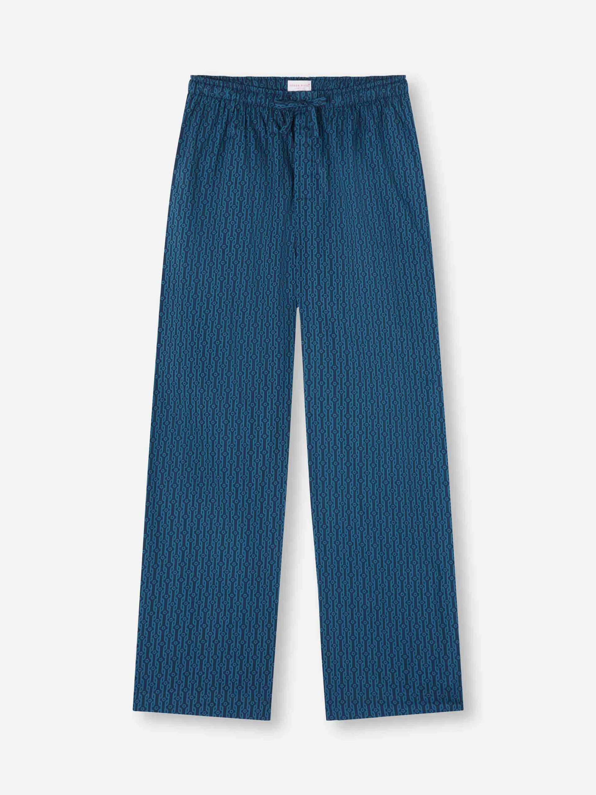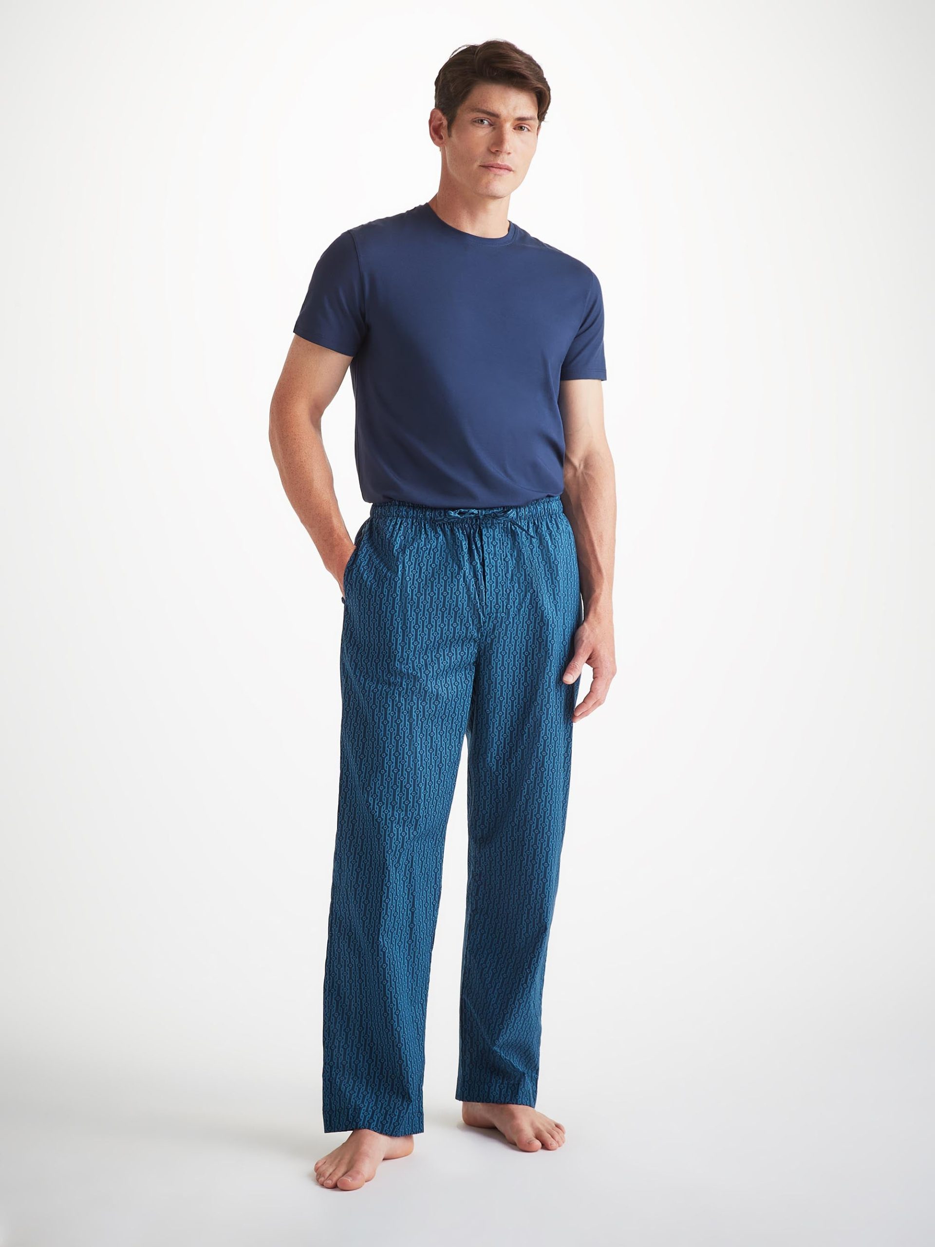 DEREK ROSE Men’s Lounge Pants Cotton Batiste Navy Rope Print Navy | MENS- Gifts for Him