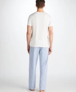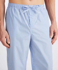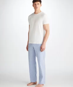 Perfect for year-round wear, the James lounge trouser is made from a summer weight 100% cotton that’s woven into a soft but crisp fabric, making it ideal for cosy nights in and laid-back lounging. Complete with a classic blue and white stripe.