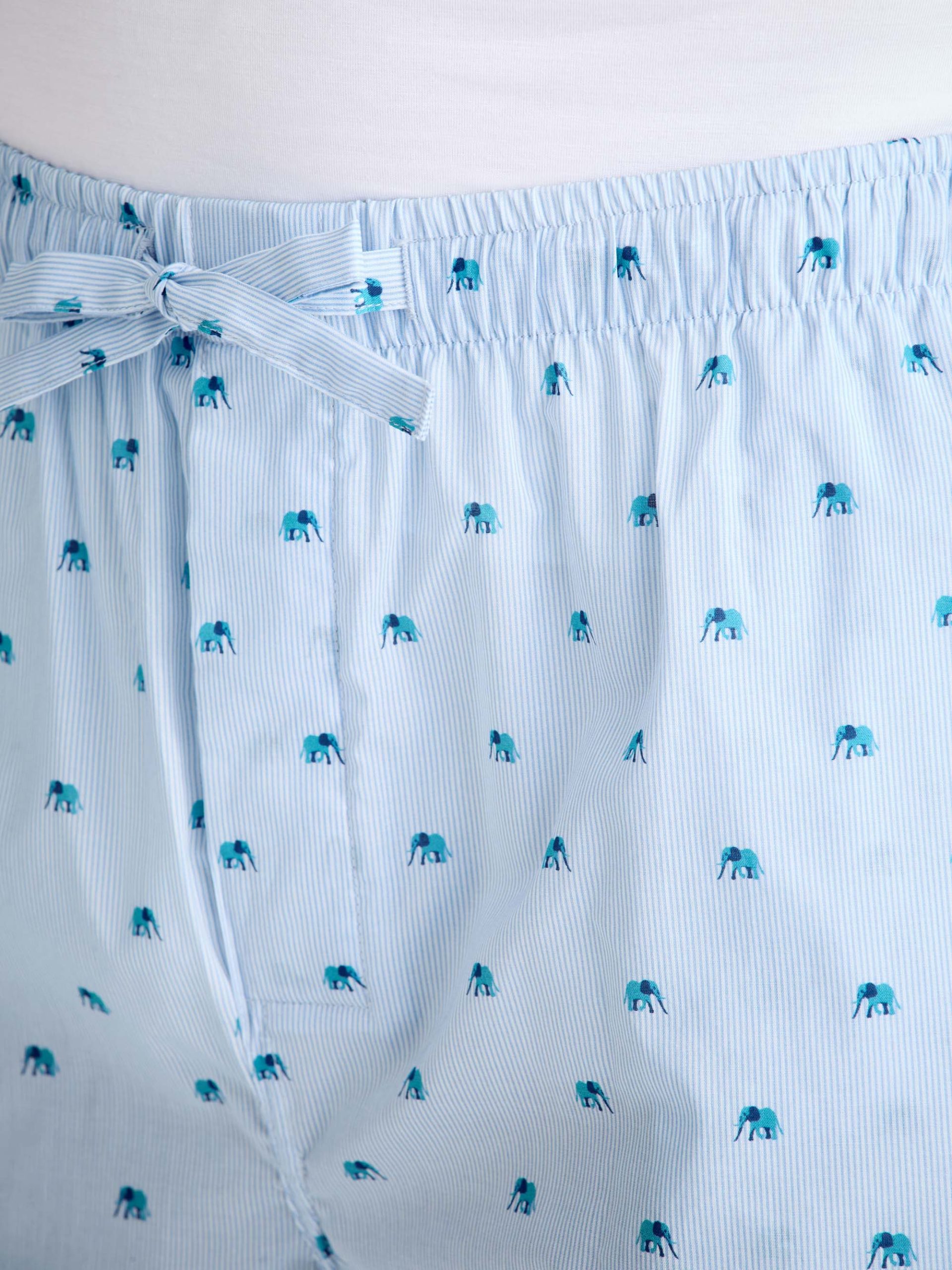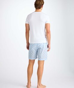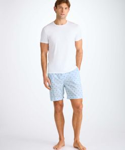 DEREK ROSE Men’s Lounge Shorts Cotton Batiste Blue Elephant Print Light Blue | MENS- Lounge Pants & Shorts