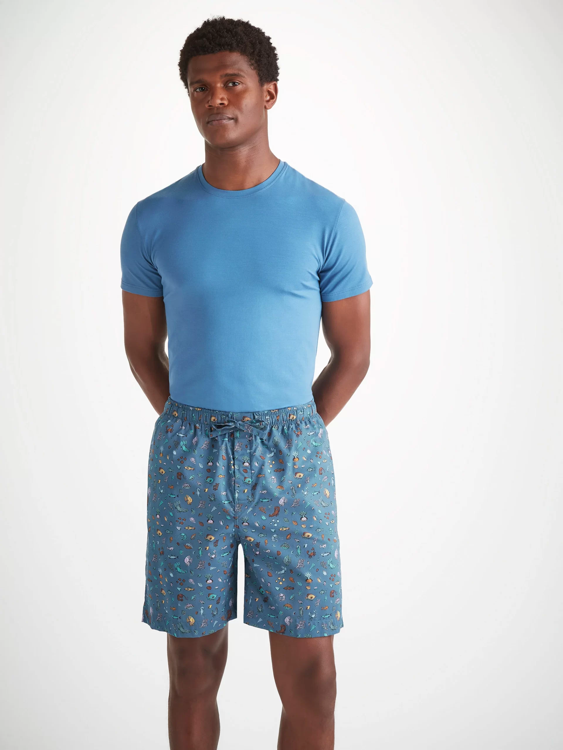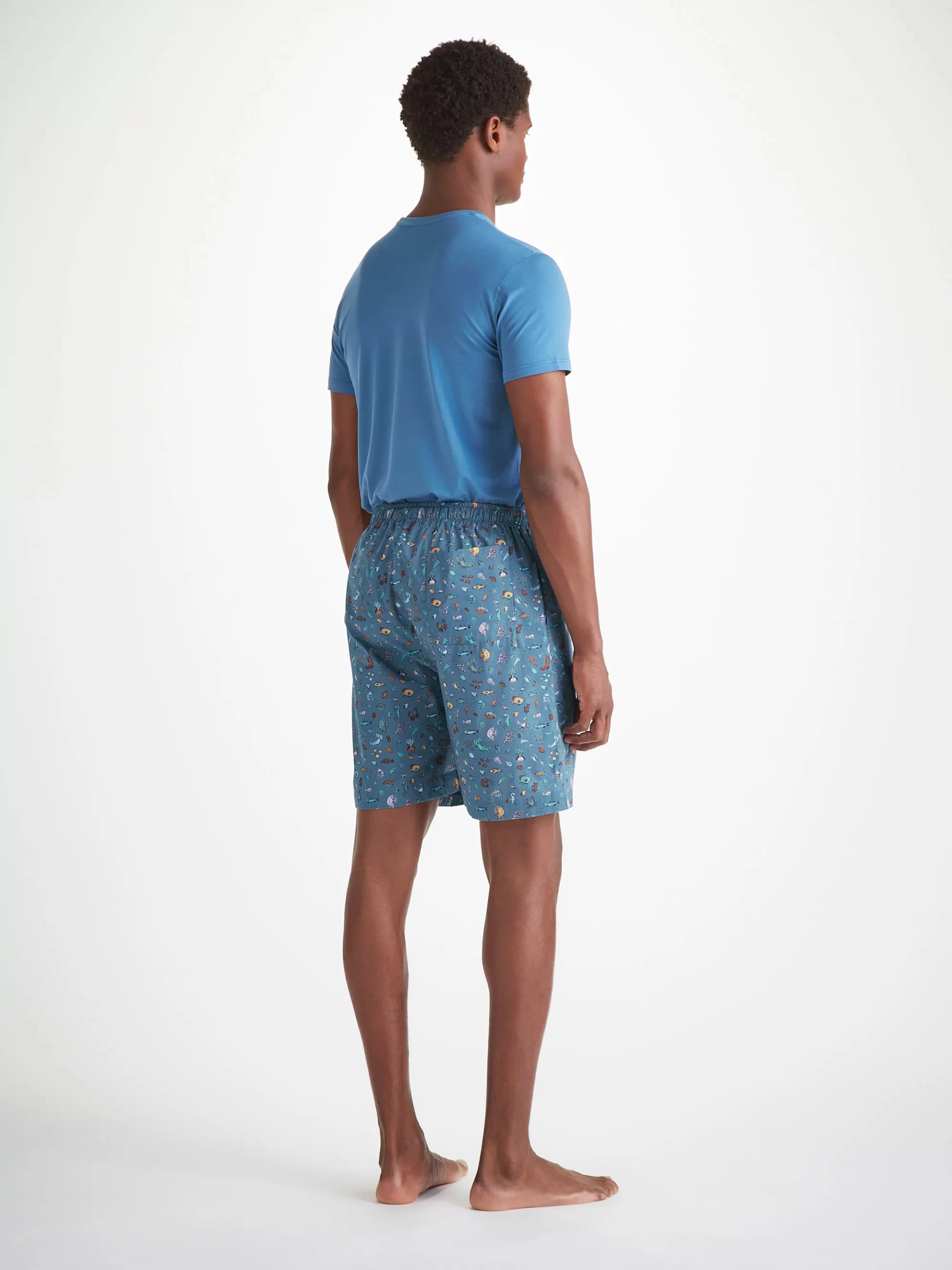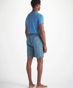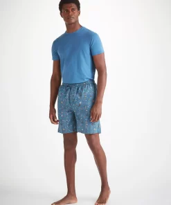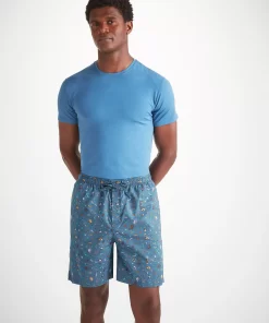 DEREK ROSE Men’s Lounge Shorts Cotton Batiste Blue Sea Friends Print Mid Blue | MENS- Lounge Pants & Shorts