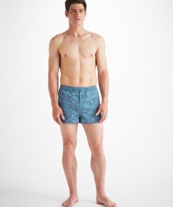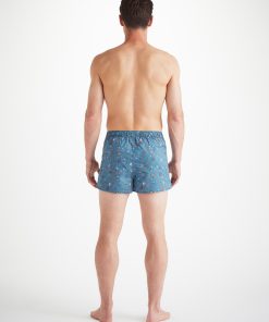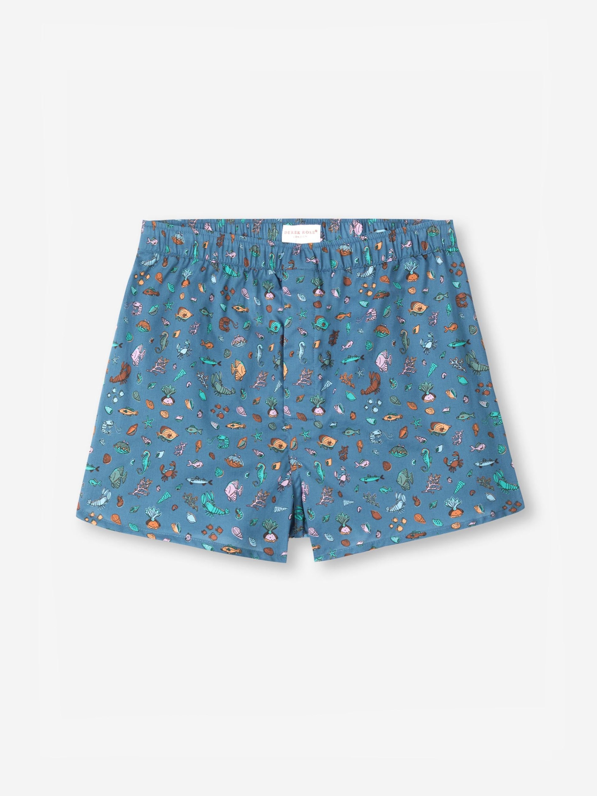 DEREK ROSE Men’s Modern Fit Boxers Cotton Batiste Blue Sea Friends Print Mid Blue | MENS- Boxer Shorts