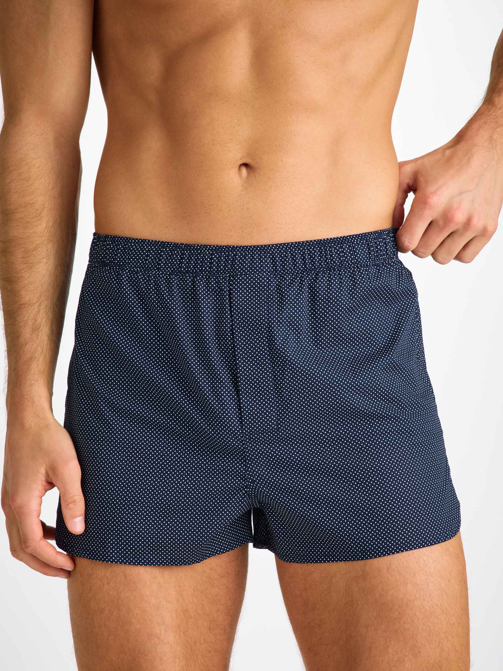 DEREK ROSE Men’s Modern Fit Boxers Cotton Batiste Navy Pin Dot Print Navy | MENS- Boxer Shorts