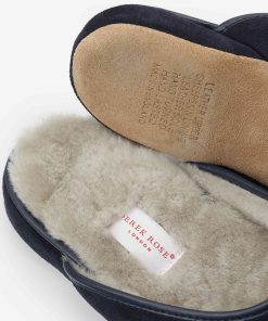The sole is made from soft suede meaning you can glide around in comfort in the morning without waking the family. The slippers are finished with a navy leather trim for an added touch of luxe.
