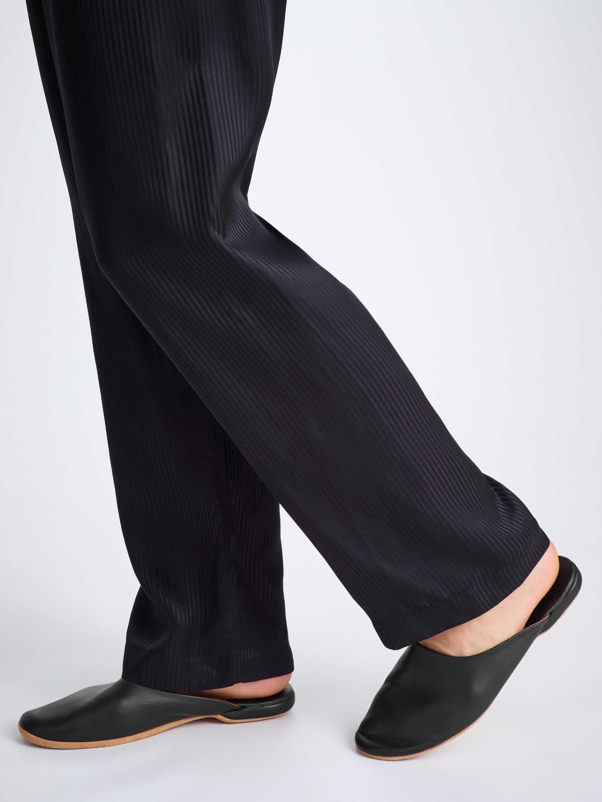 The footwear of the moment. Complete your sleepwear or loungewear look with our handmade calfskin mule slippers, for head-to-toe feel-good comfort. Perfect to slip on when relaxing at the end of a hard day’s work or when running errands around the house for an effortlessly stylish and modern aesthetic.