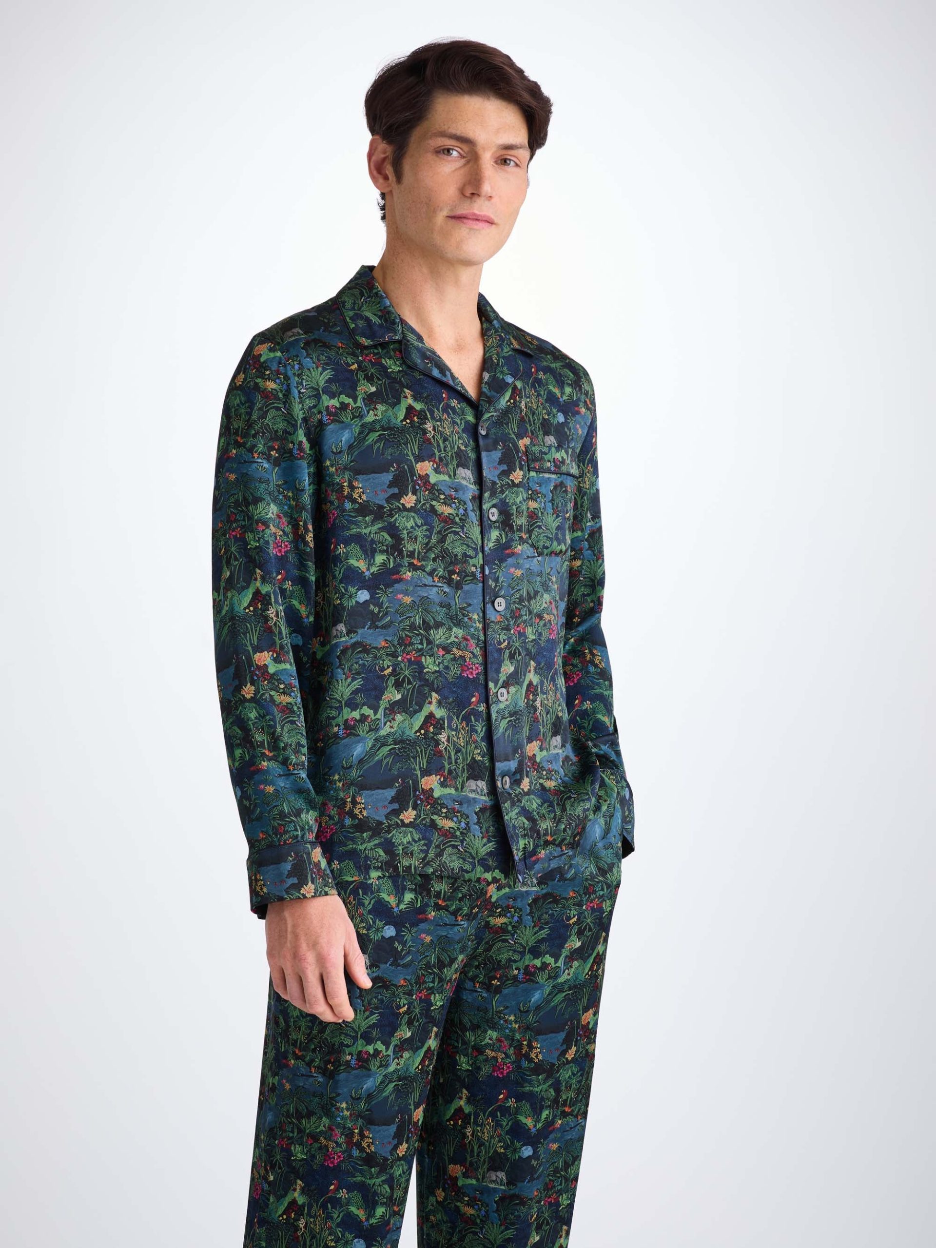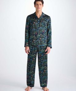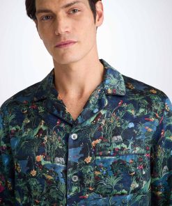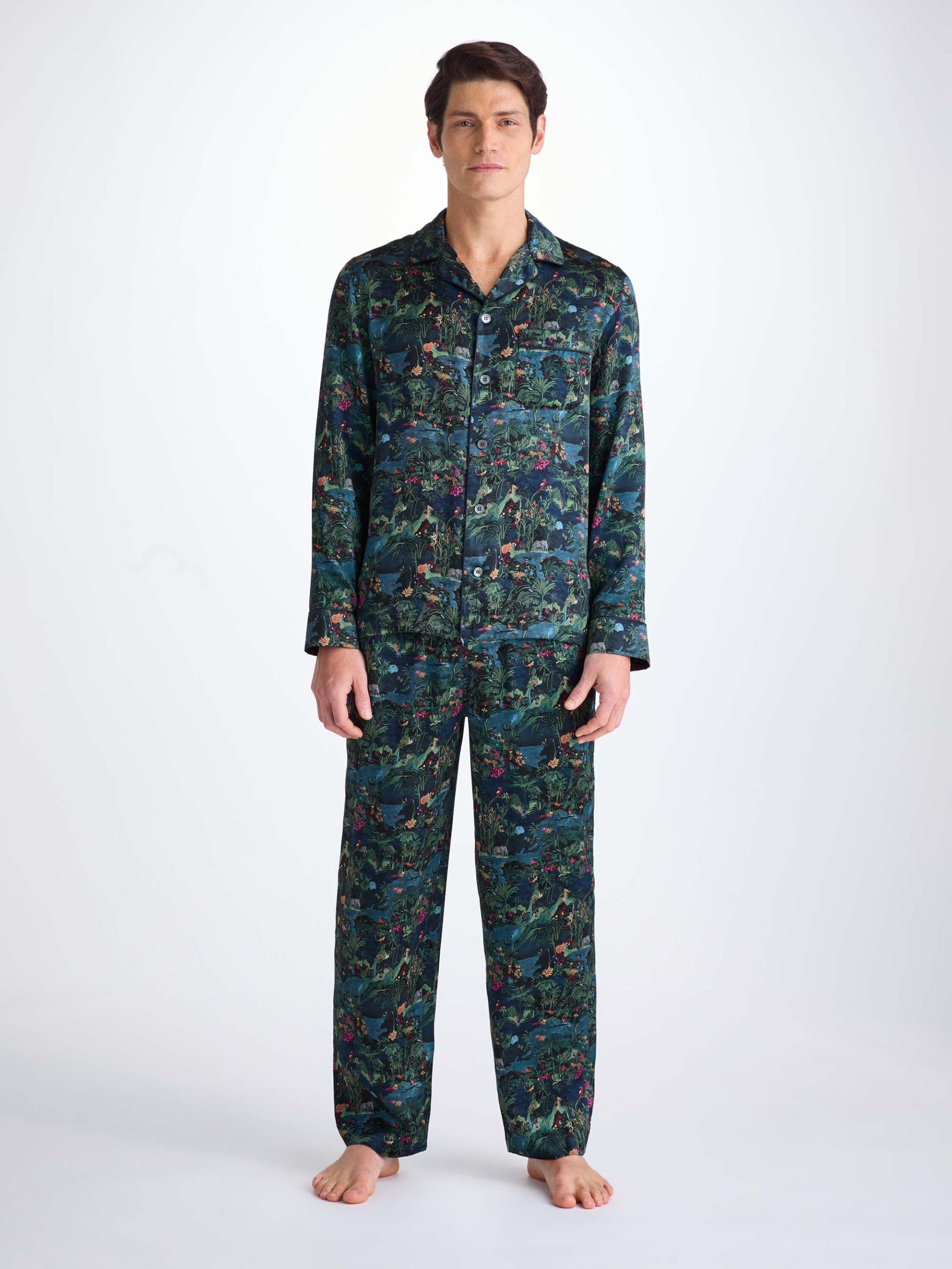 DEREK ROSE Men’s Pajamas Silk Satin Multi Midnight Jungle Print Multi | MENS- Pajamas