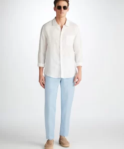 DEREK ROSE Men’s Pants Sydney 2 Linen Blue Light Blue | MENS- Gifts for Him