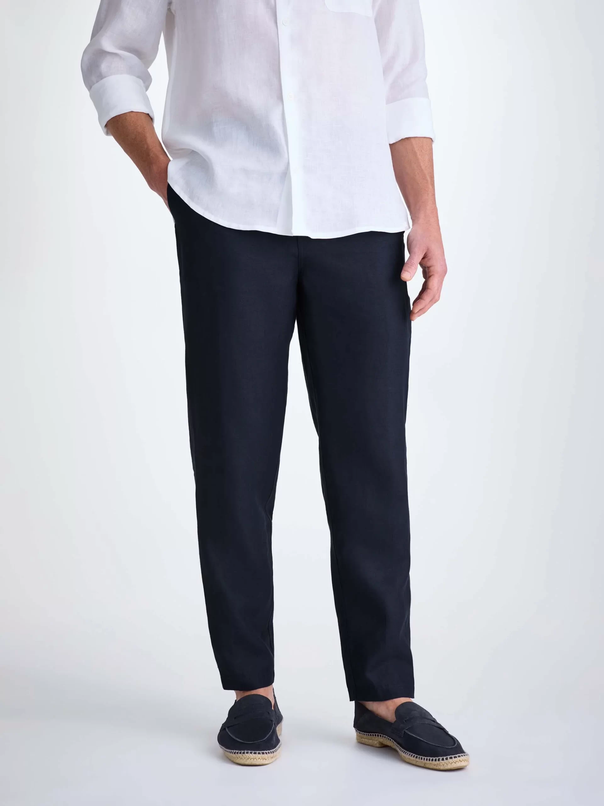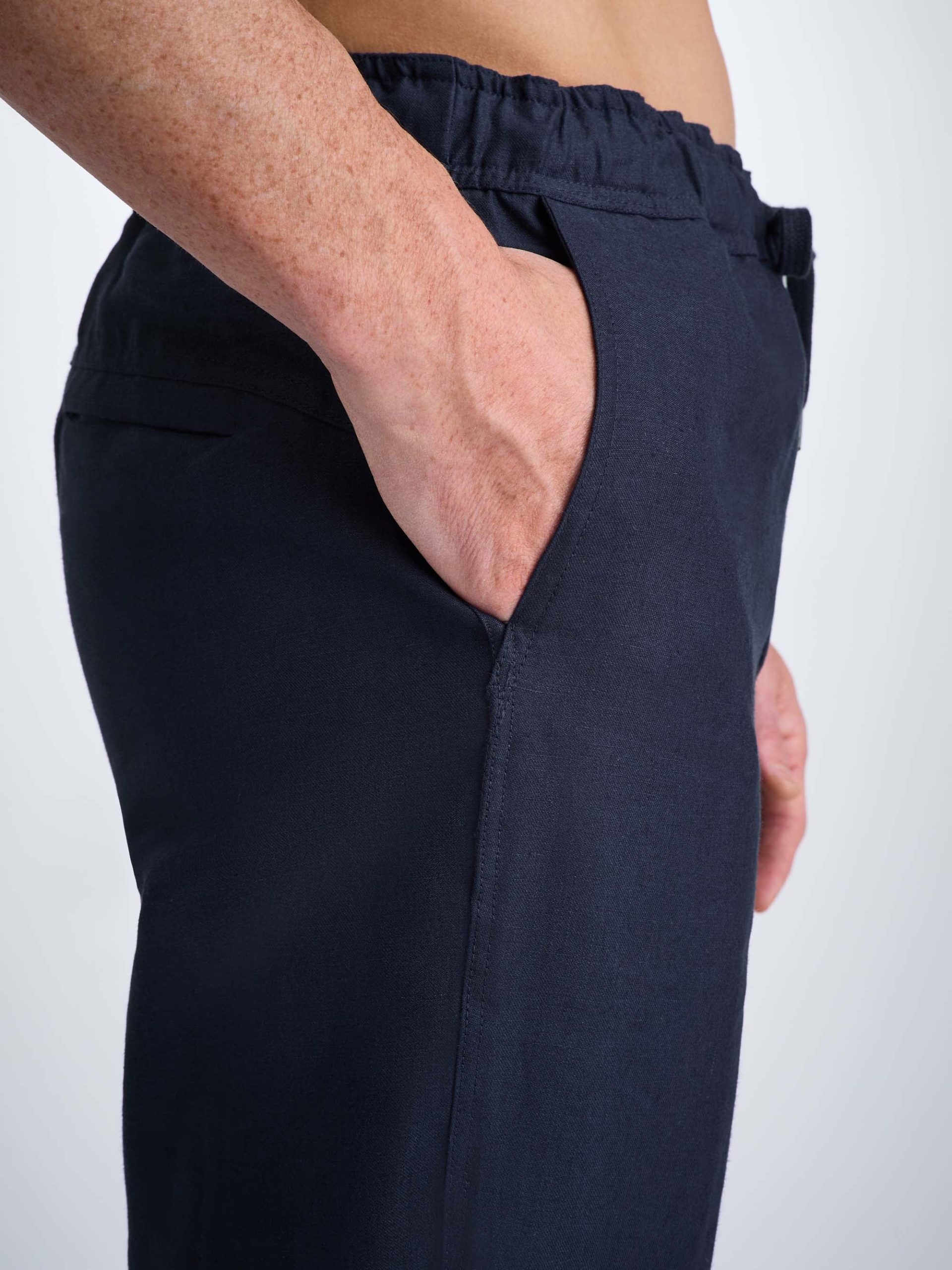DEREK ROSE Men’s Pants Sydney 2 Linen Navy Navy | MENS- Gifts for Him