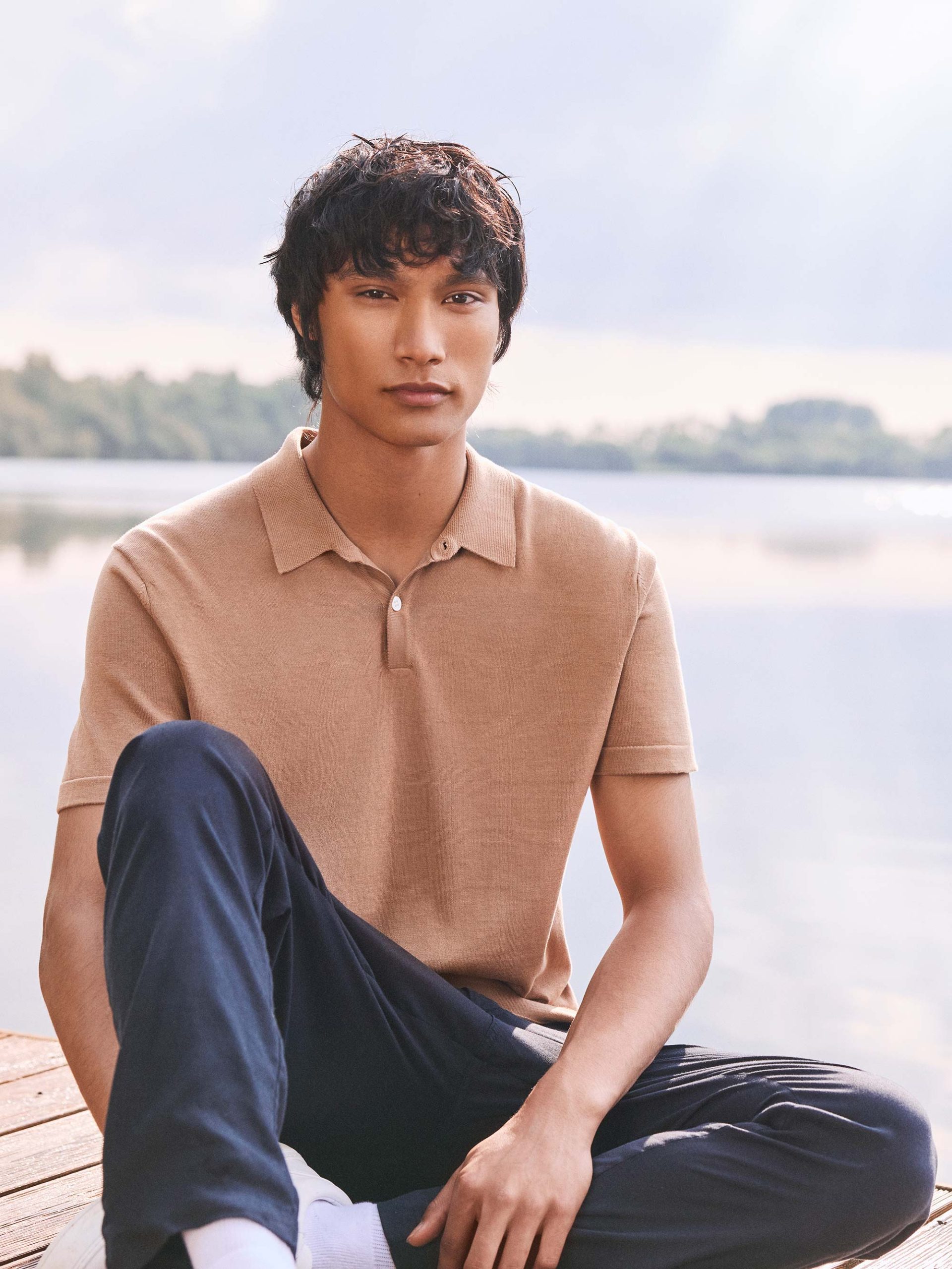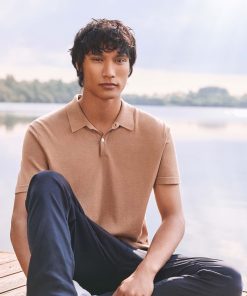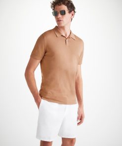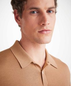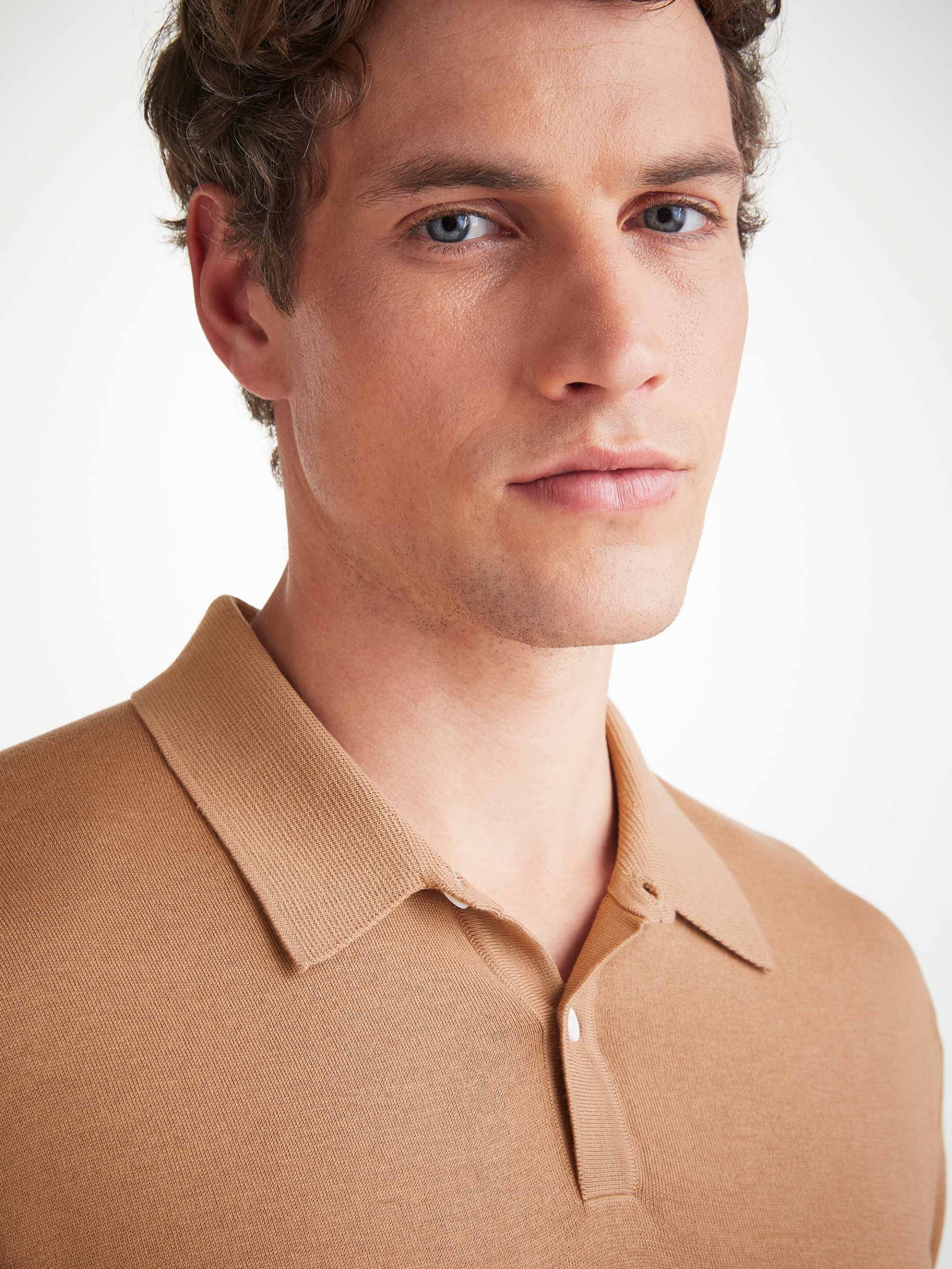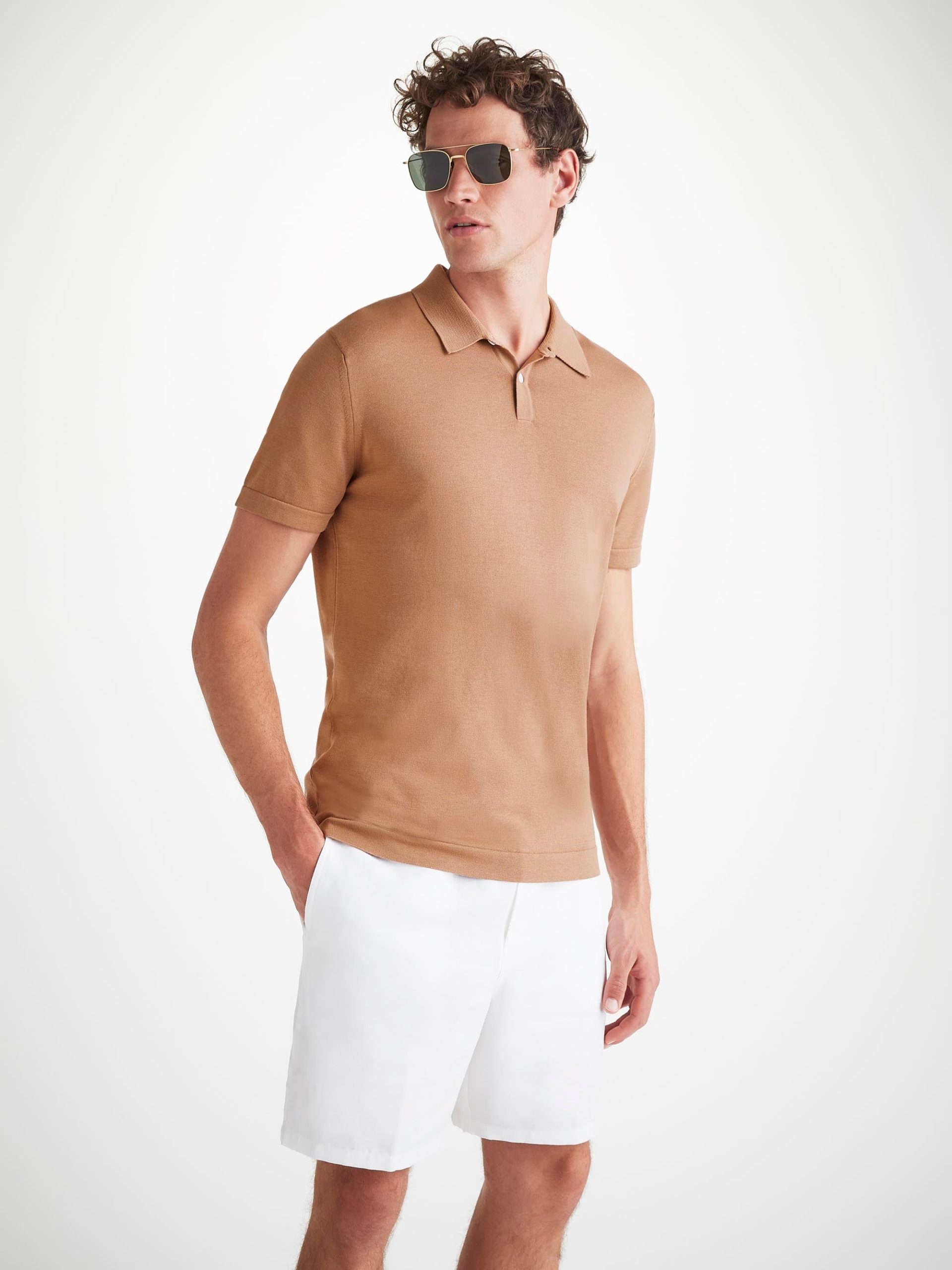 DEREK ROSE Men’s Polo Shirts Jacob Sea Island Cotton Camel Camel | MENS- Gifts for Him