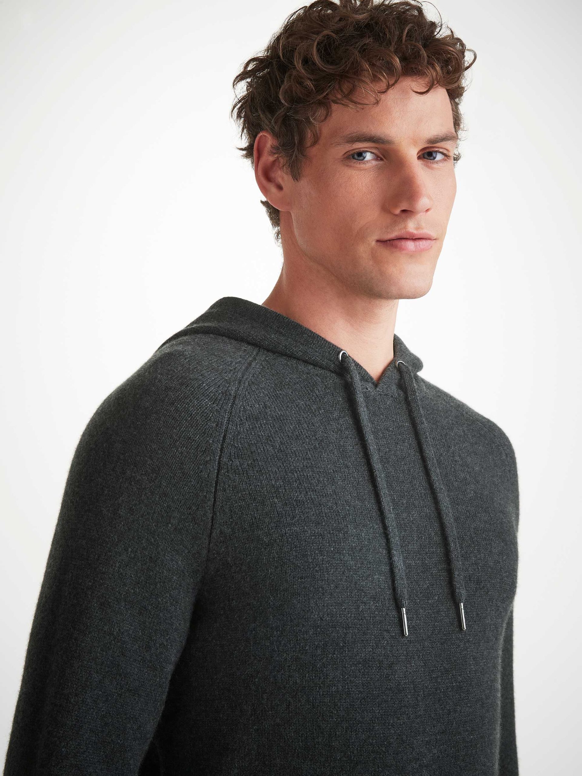 DEREK ROSE Men’s Pullover Hoodie Dominic Cashmere Charcoal Charcoal | MENS- Gifts for Him