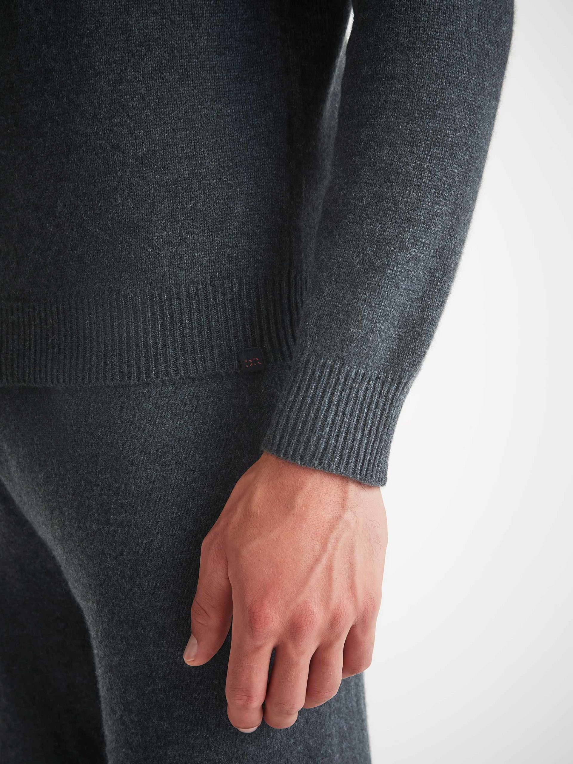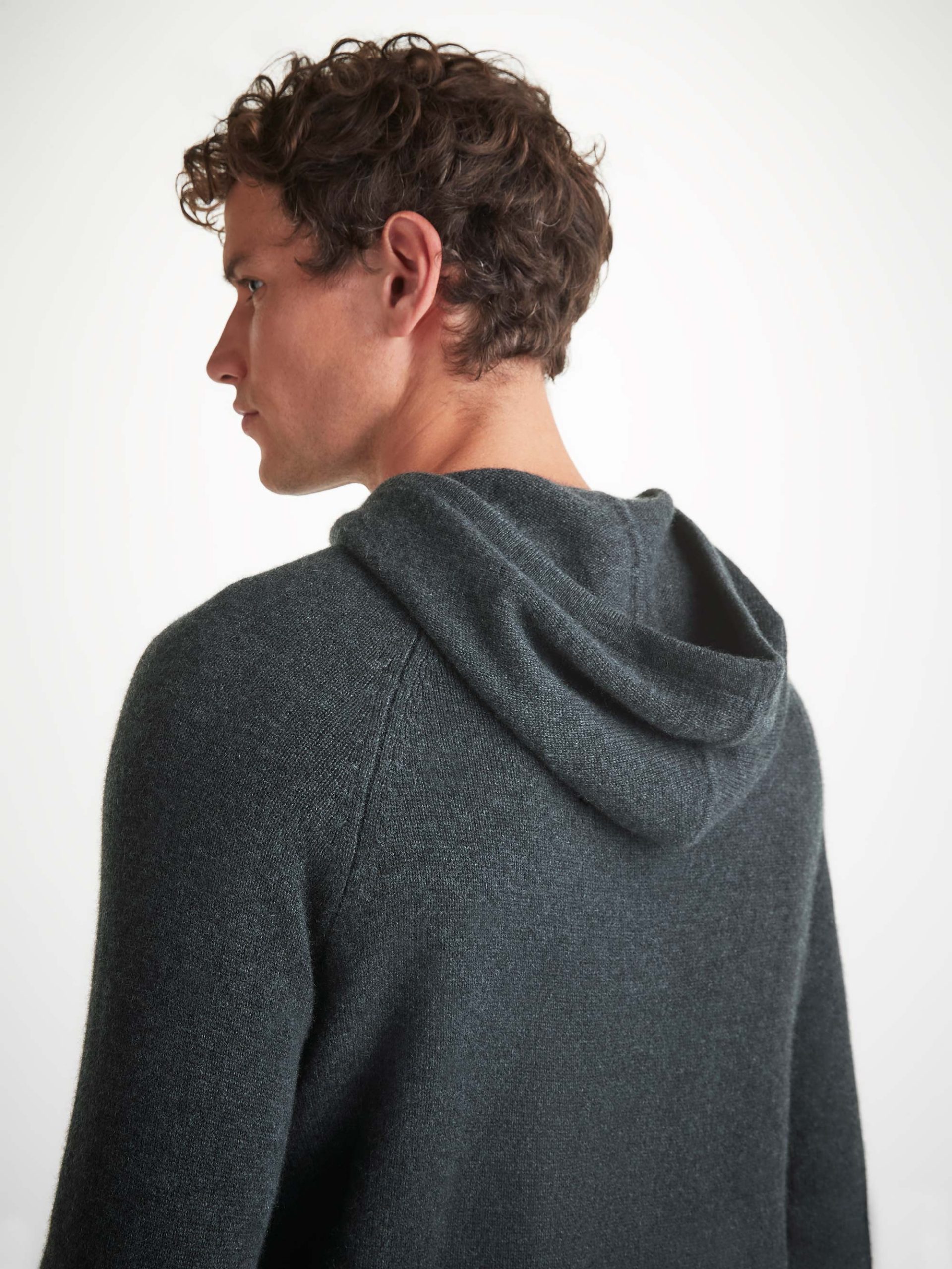 Designed for every man everyday. The new Dominic charcoal pullover cashmere hoodie makes the perfect layer for travelling in and the chunkier weight is ideal for colder climates.
