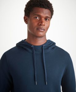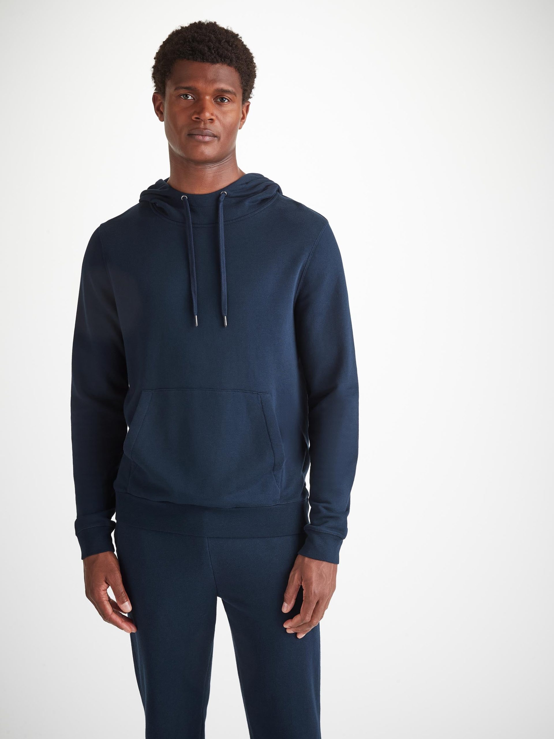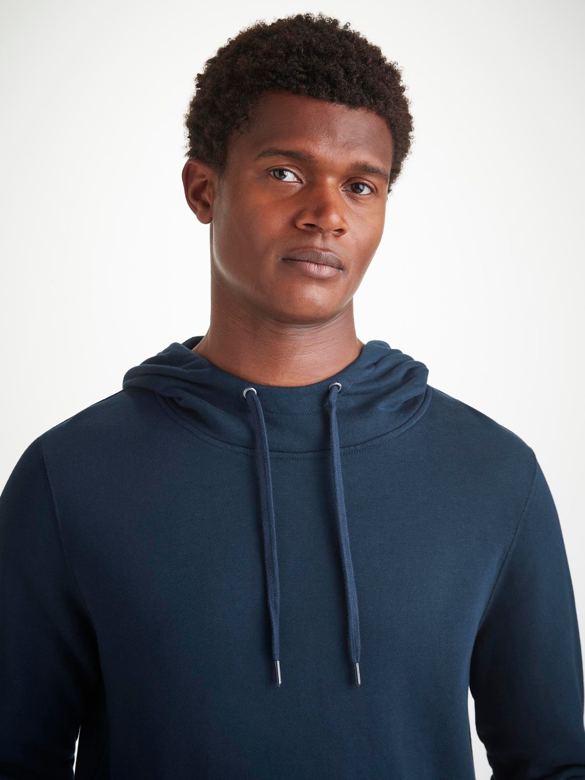 A brand new addition to our Quinn collection, our cotton modal blend pullover hoodie is a luxurious leisurewear essential. In a regular fit, this navy hoodie features a cosy funnel neck alongside a two panel hood for optimal comfort.