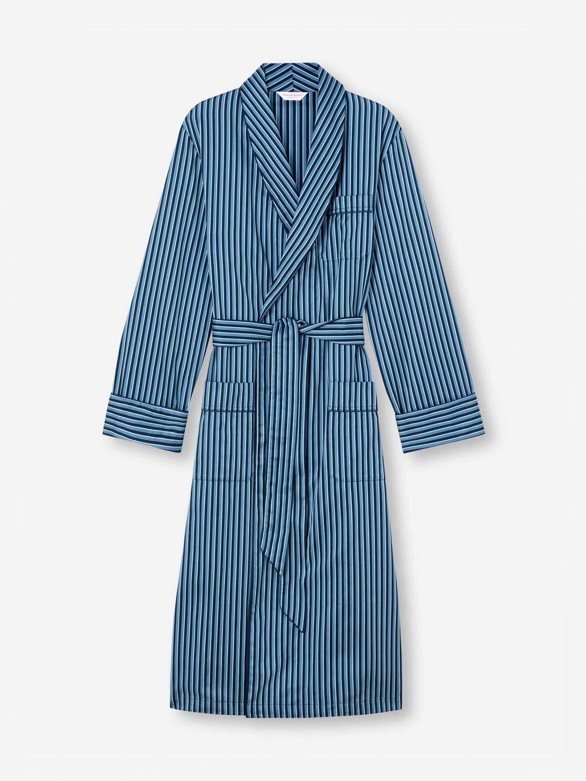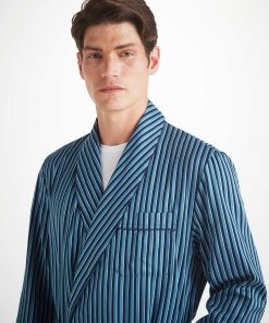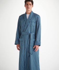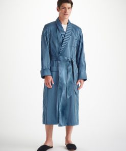 DEREK ROSE Men’s Robe Wellington 58 Cotton Blue Mid Blue | MENS- Gifts for Him