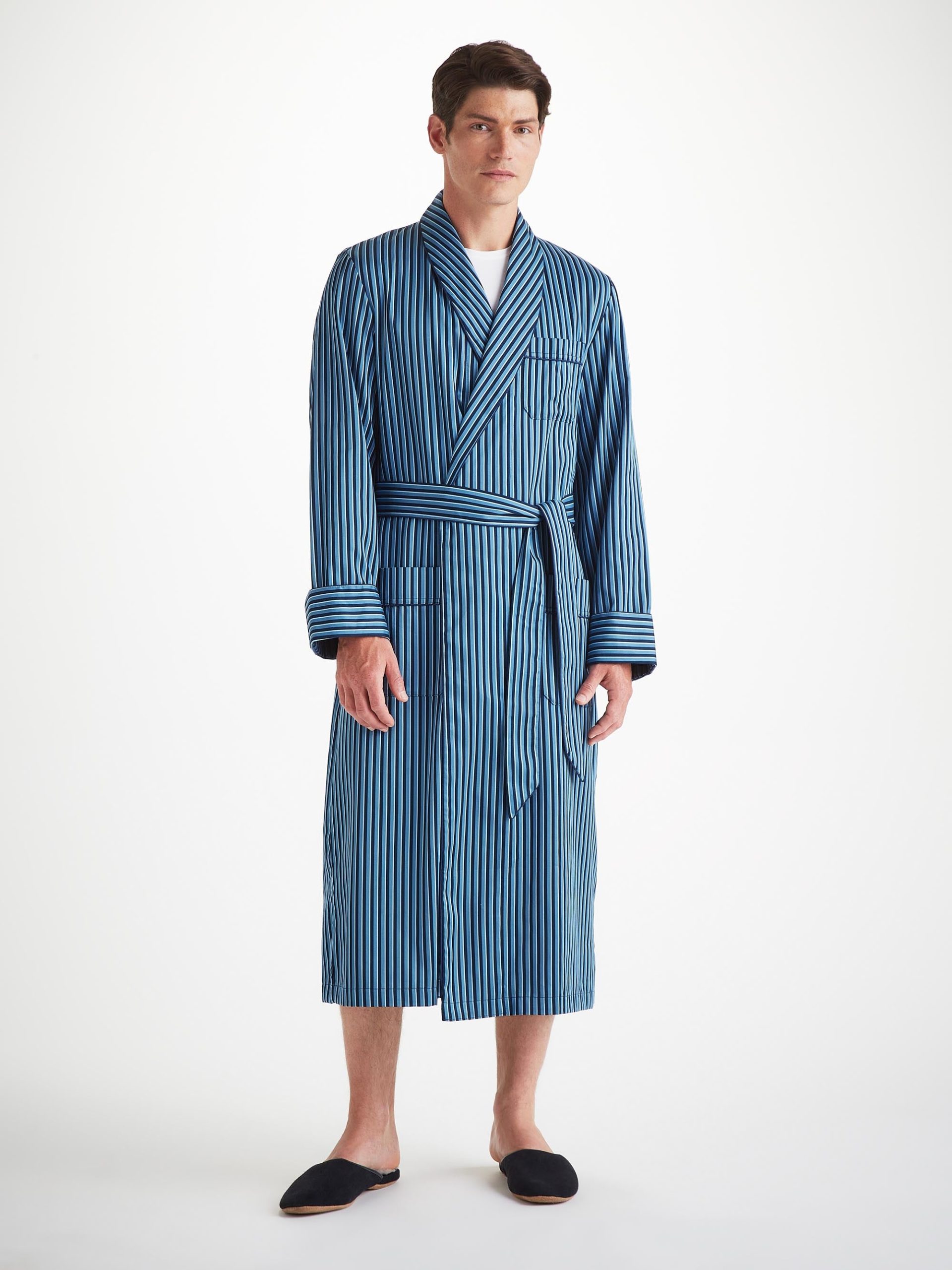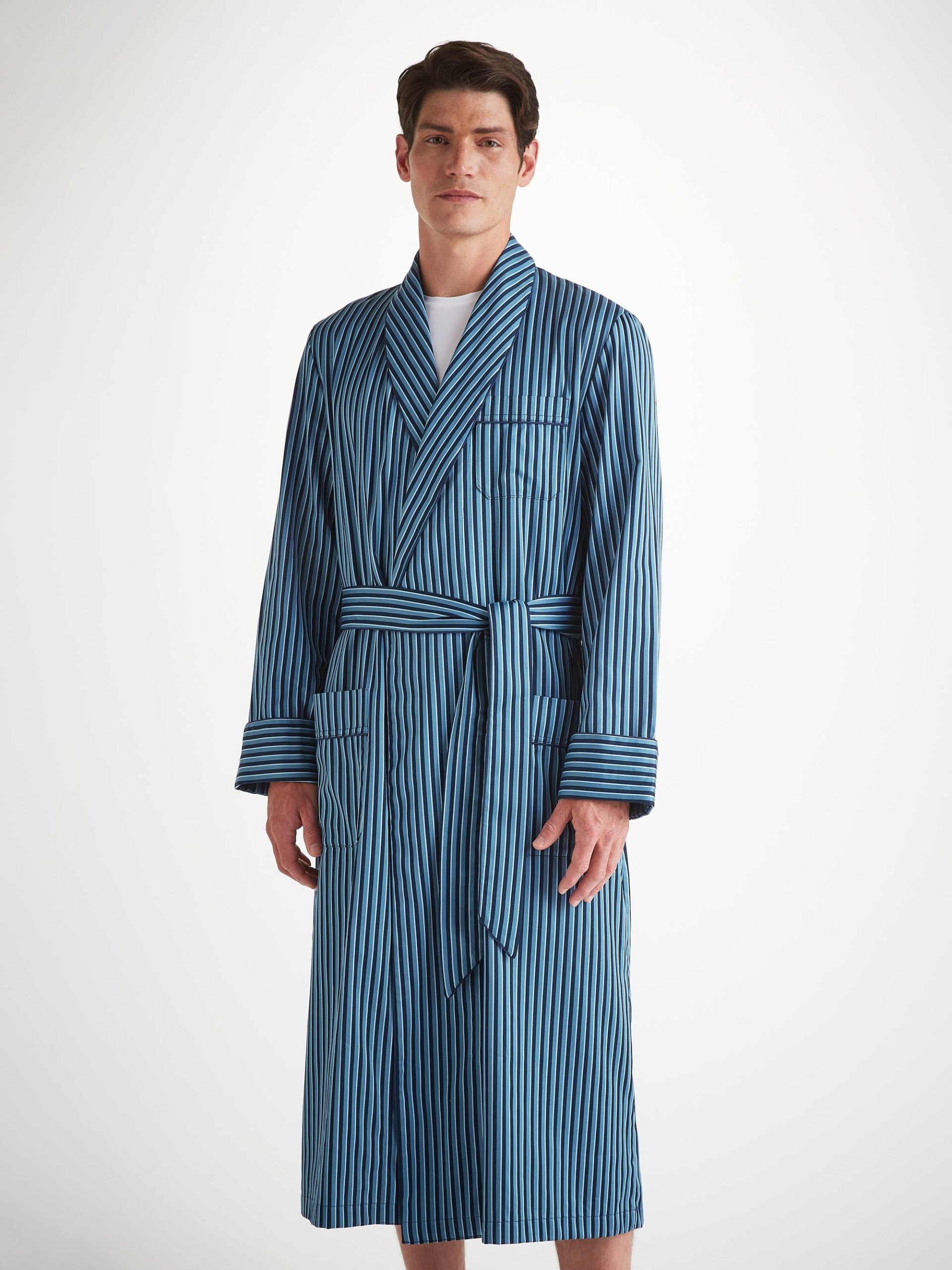 Designed to enhance your free time, our calf length dressing gown features two side seam pockets and a chest pocket ready for monogramming, a shawl style collar and a waist-tie for an effortlessly stylish finish.