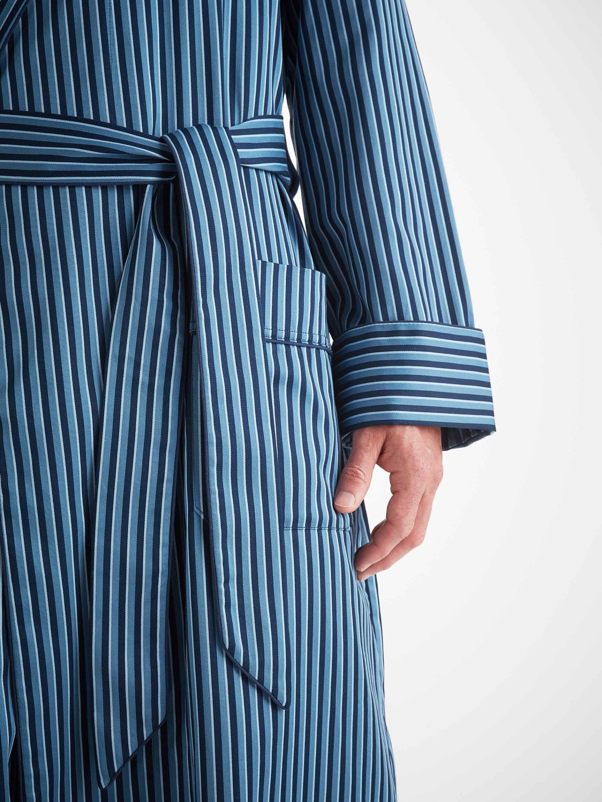 Our cotton batiste has become a firm favourite of our customers, thanks to its breathability, lightweight properties and luxuriously soft feel. With its stylish blue classic stripe, this gown is the perfect choice for breakfast at home or for weekends away with loved ones.