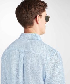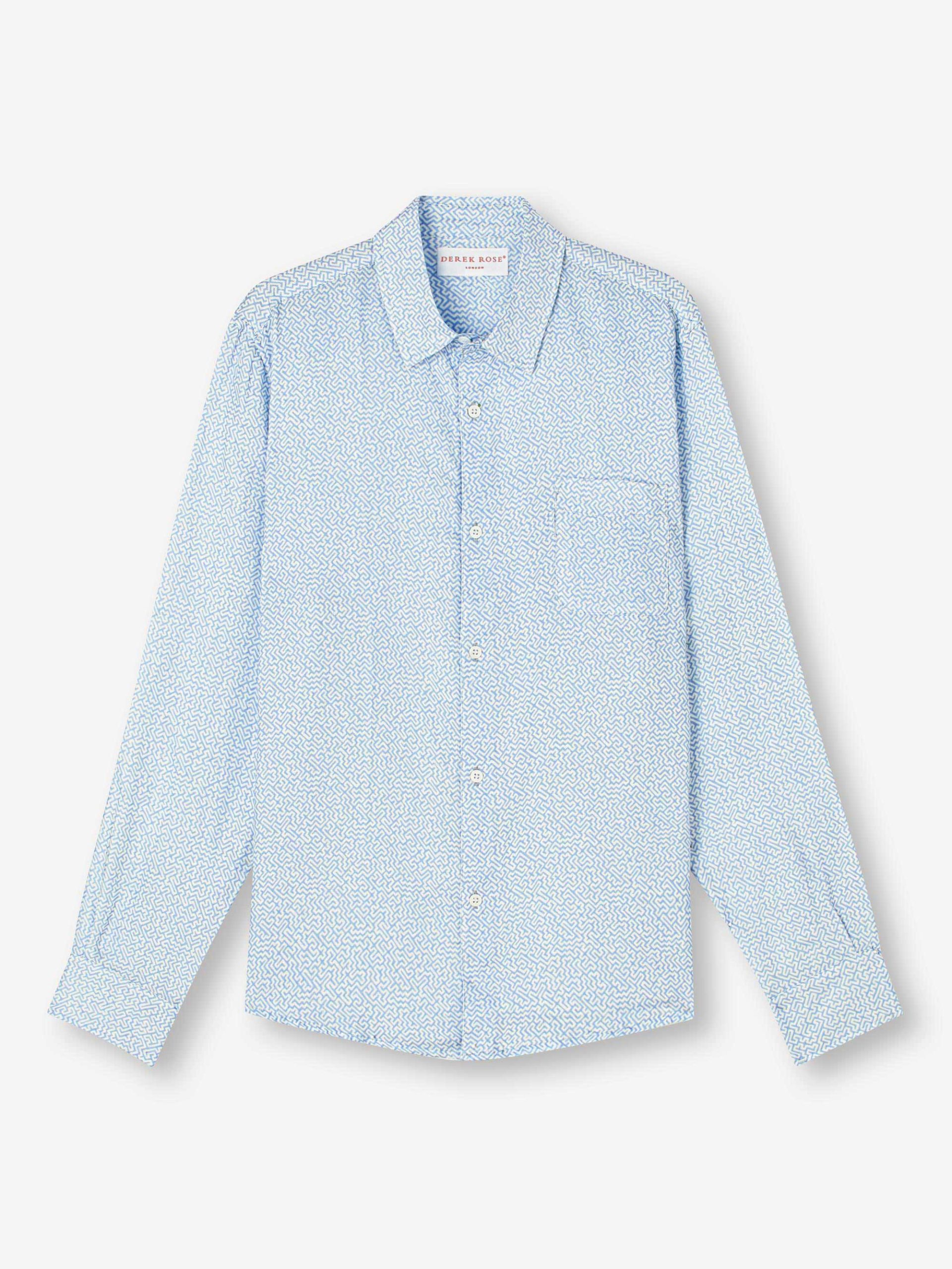 For a final touch of luxe, the blue geometric print inspired by the Labyrinth of Minos is finished with mother of pearl buttons throughout and our minimalist rose logo label at the hem. There’s also a handy ‘locker’ loop on the back for you to hang your shirt up when changing.
