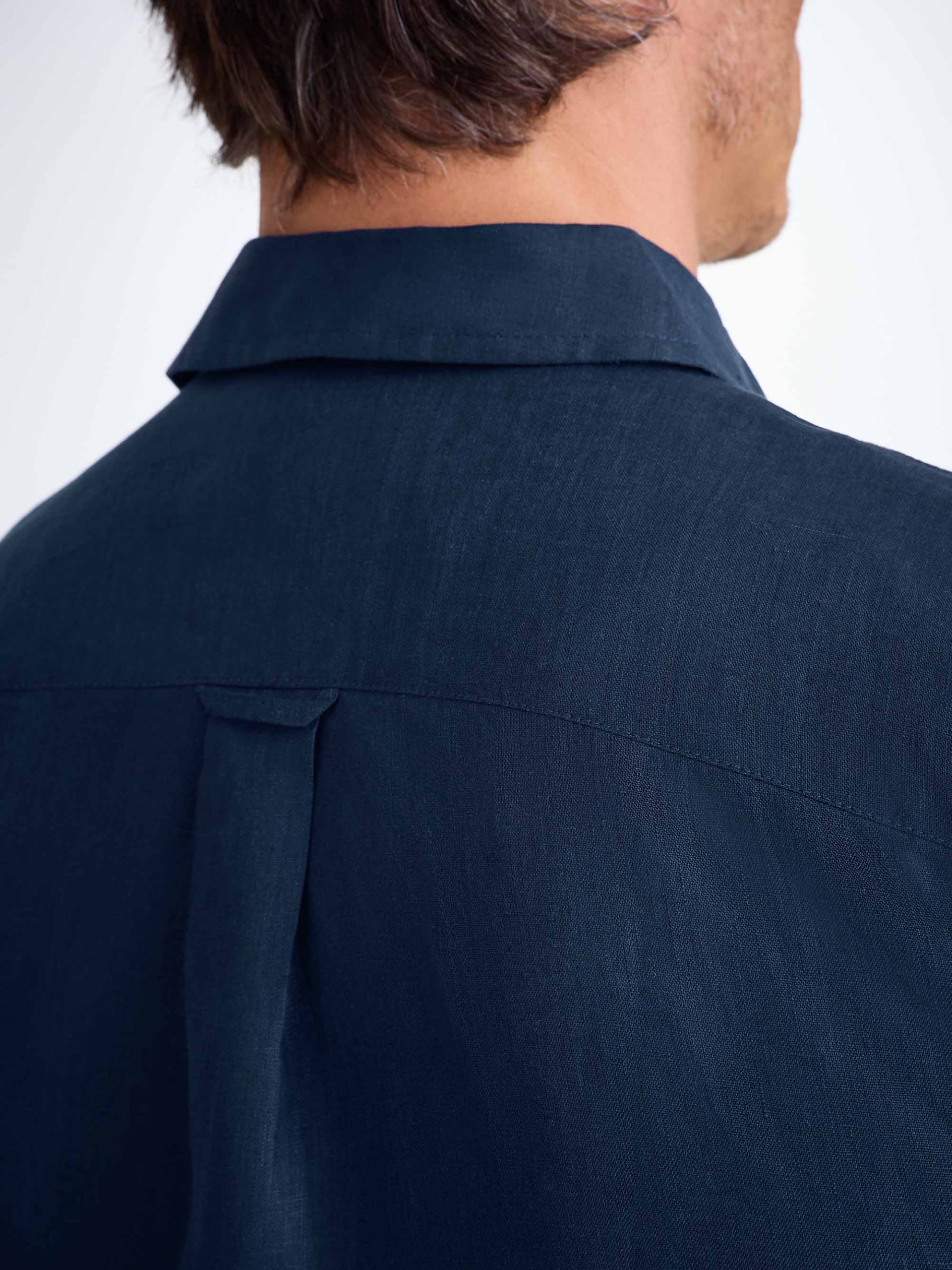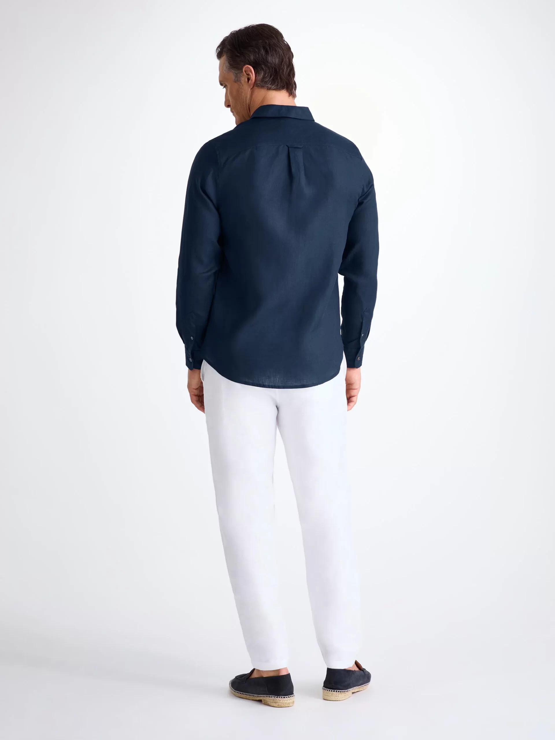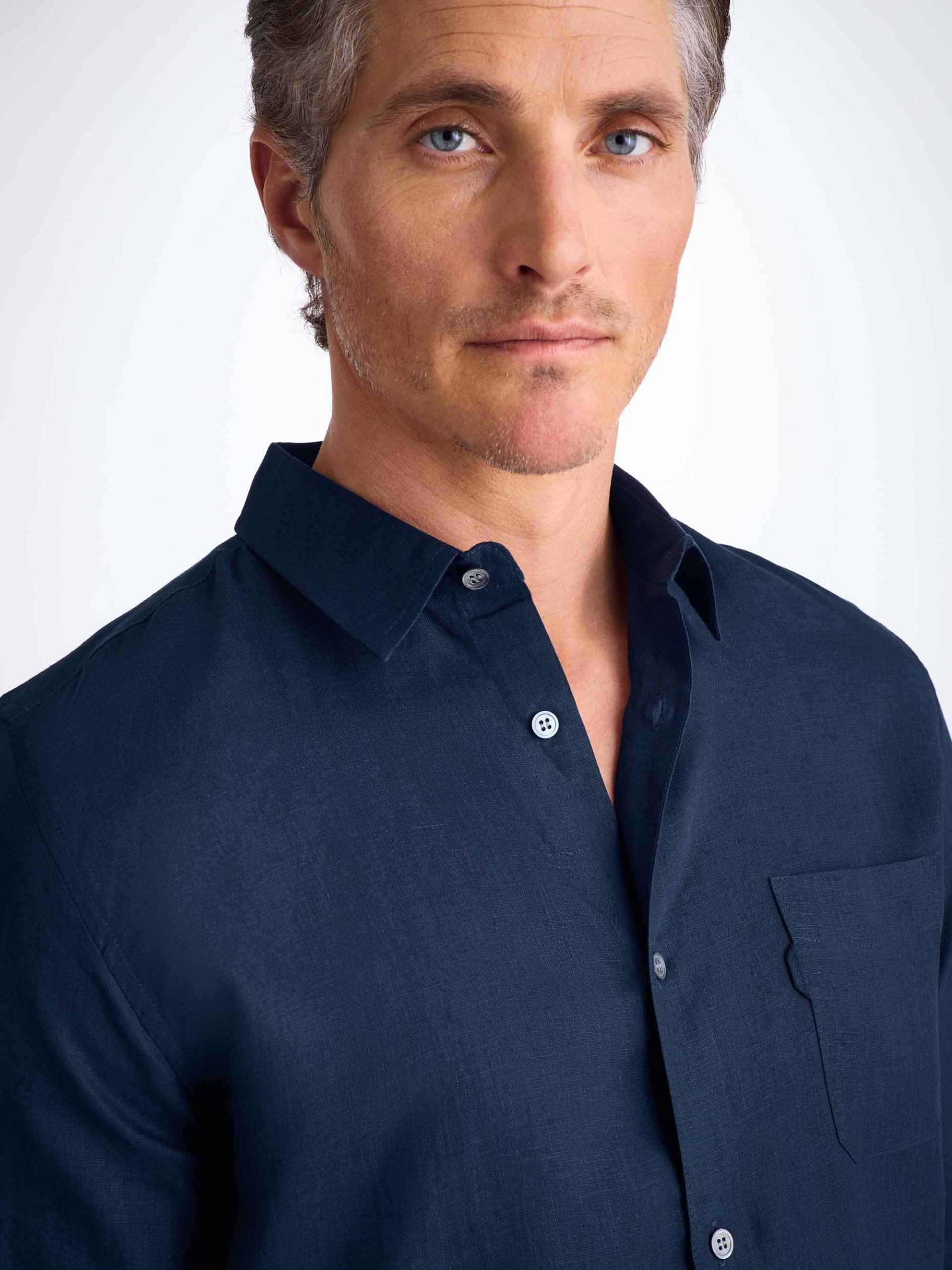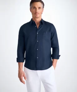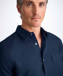 DEREK ROSE Men’s Shirt Monaco 2 Linen Navy Navy | MENS- Gifts for Him