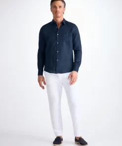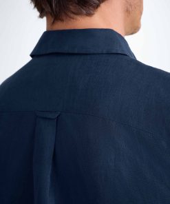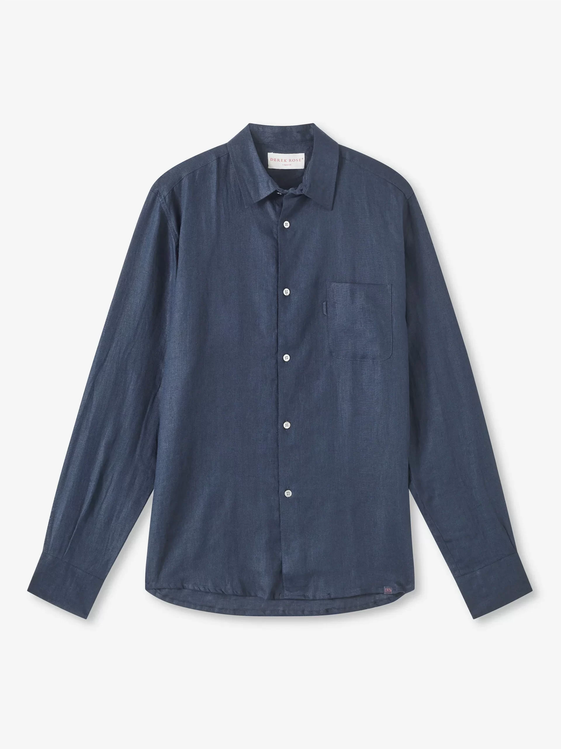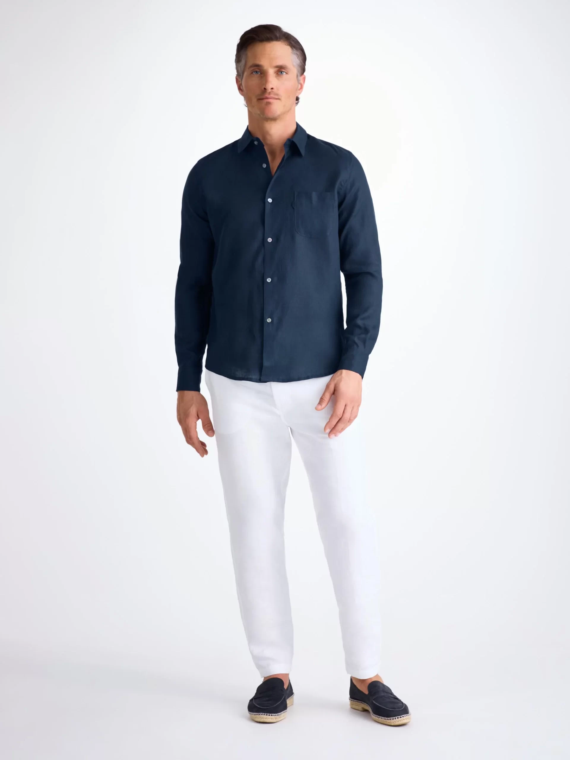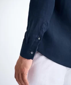 DEREK ROSE Men’s Shirt Monaco 2 Linen Navy Navy | MENS- Gifts for Him