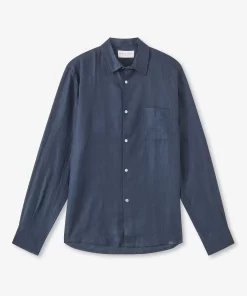 DEREK ROSE Men’s Shirt Monaco 2 Linen Navy Navy | MENS- Gifts for Him
