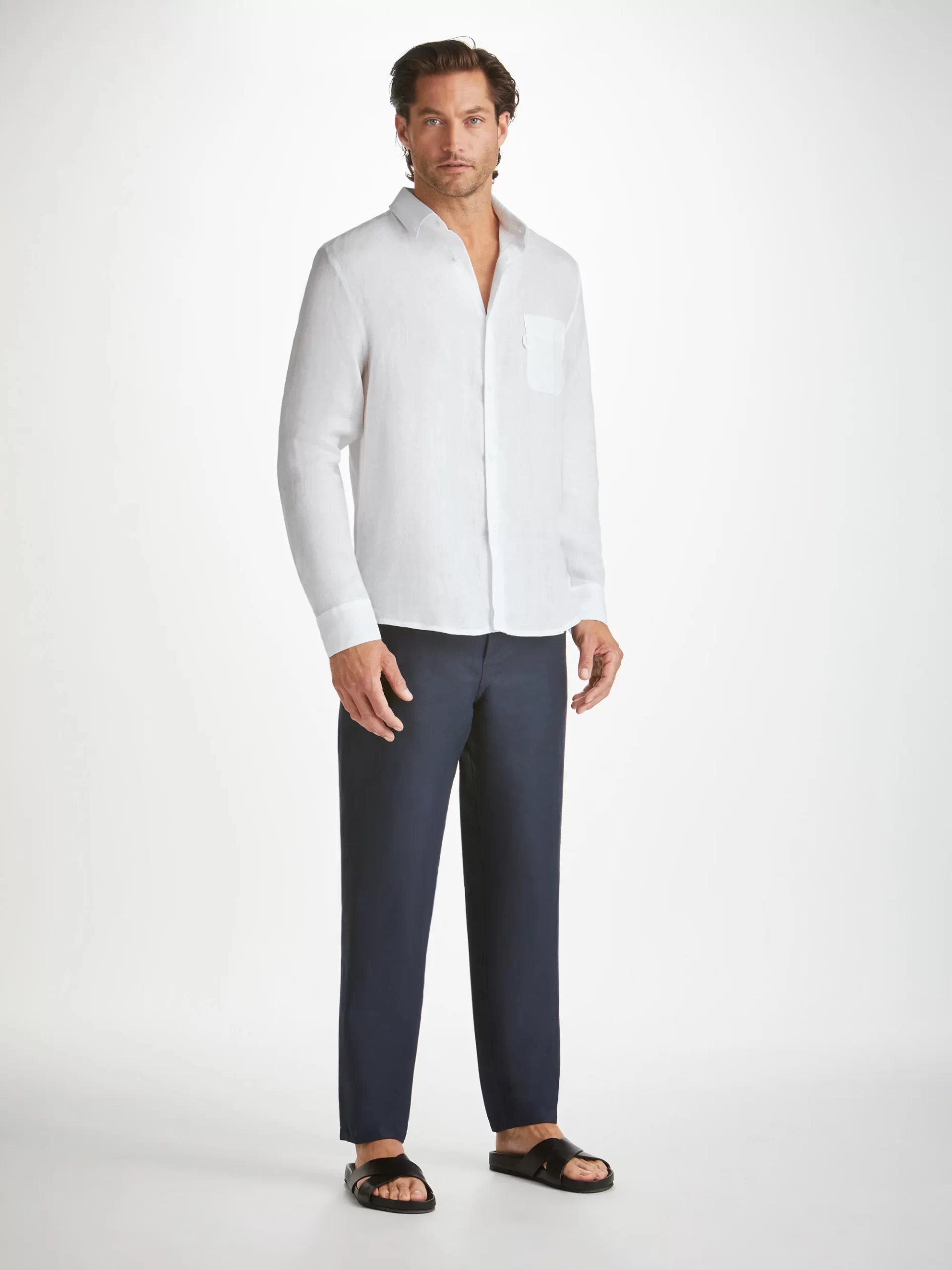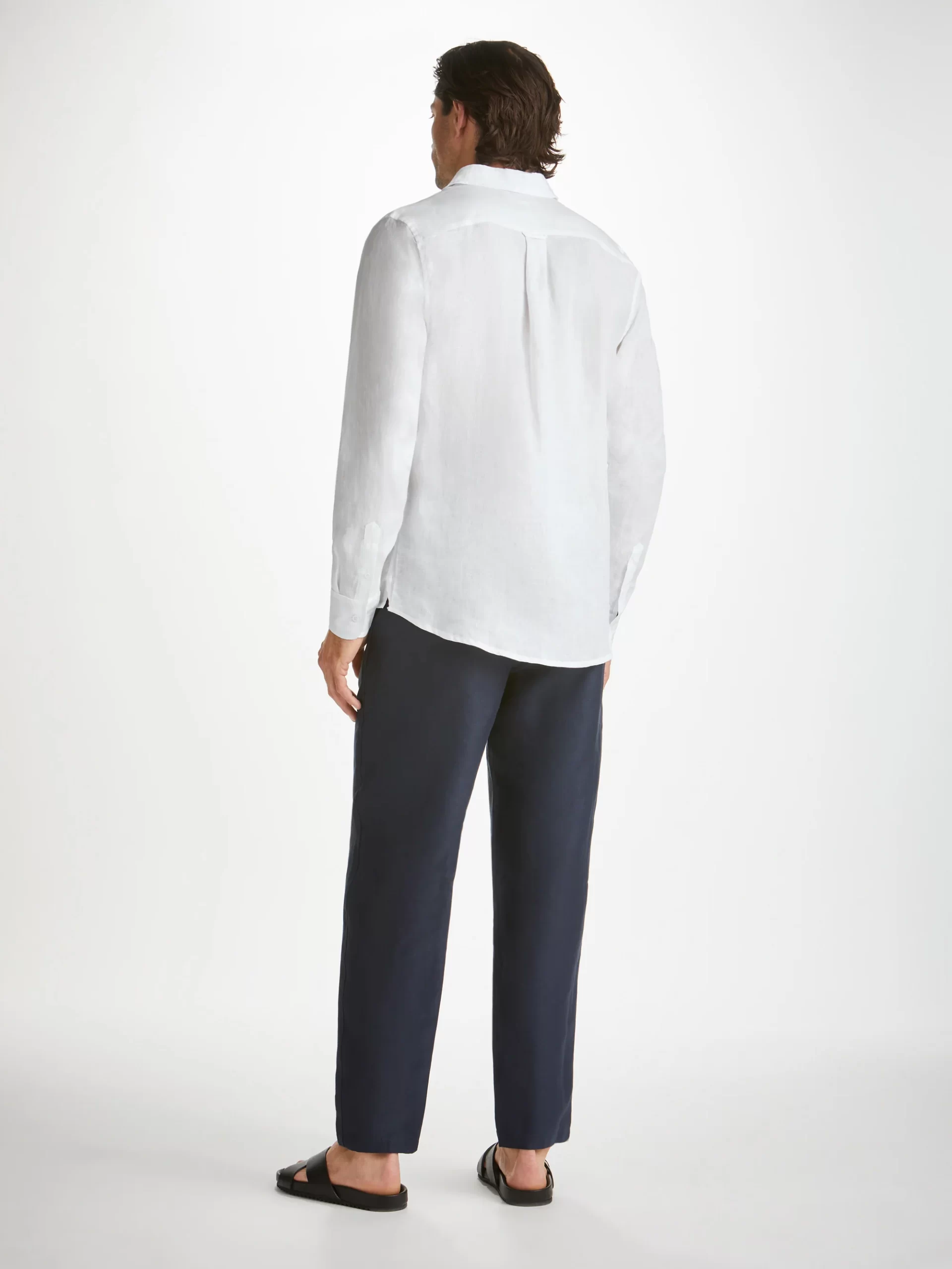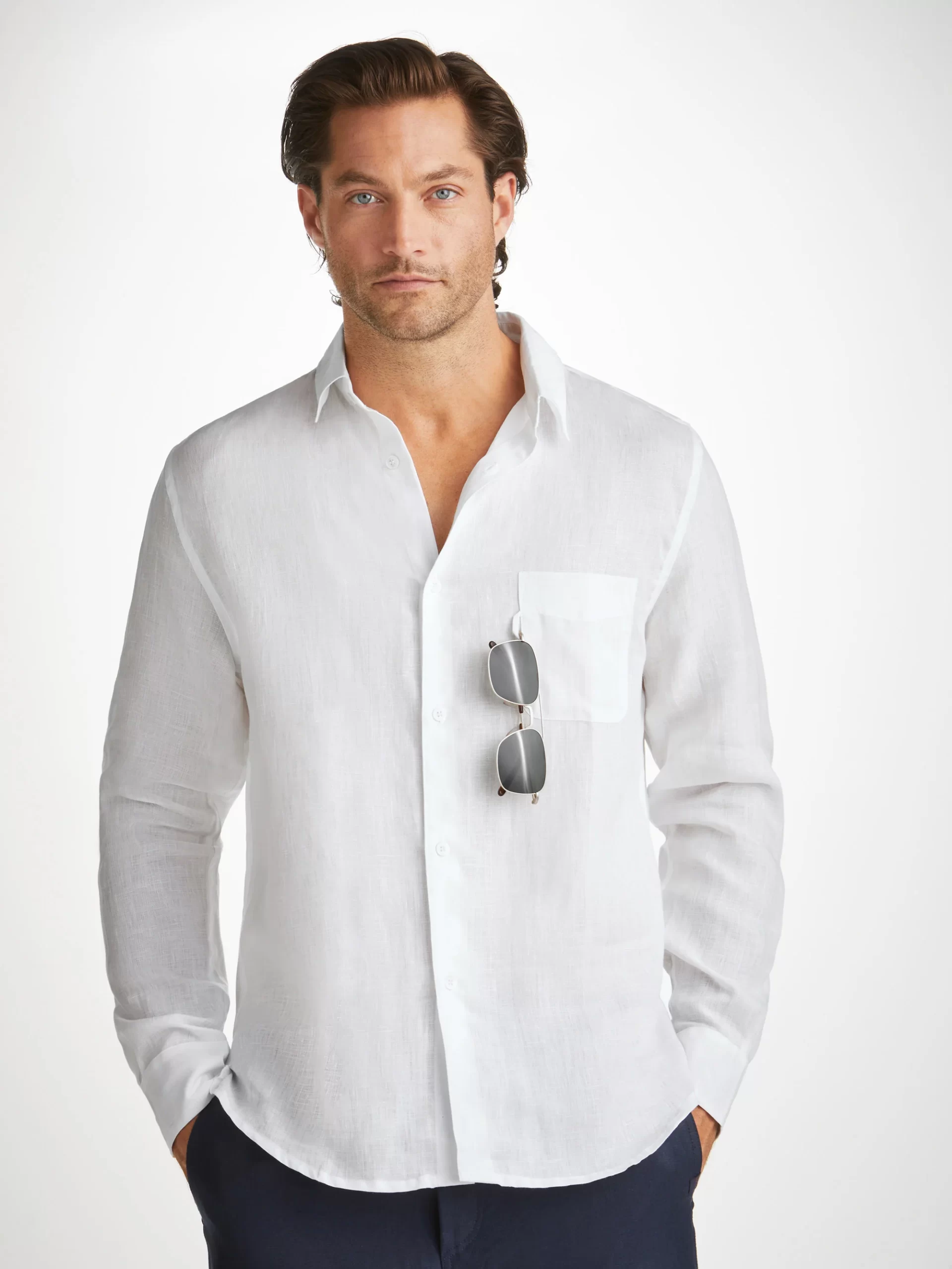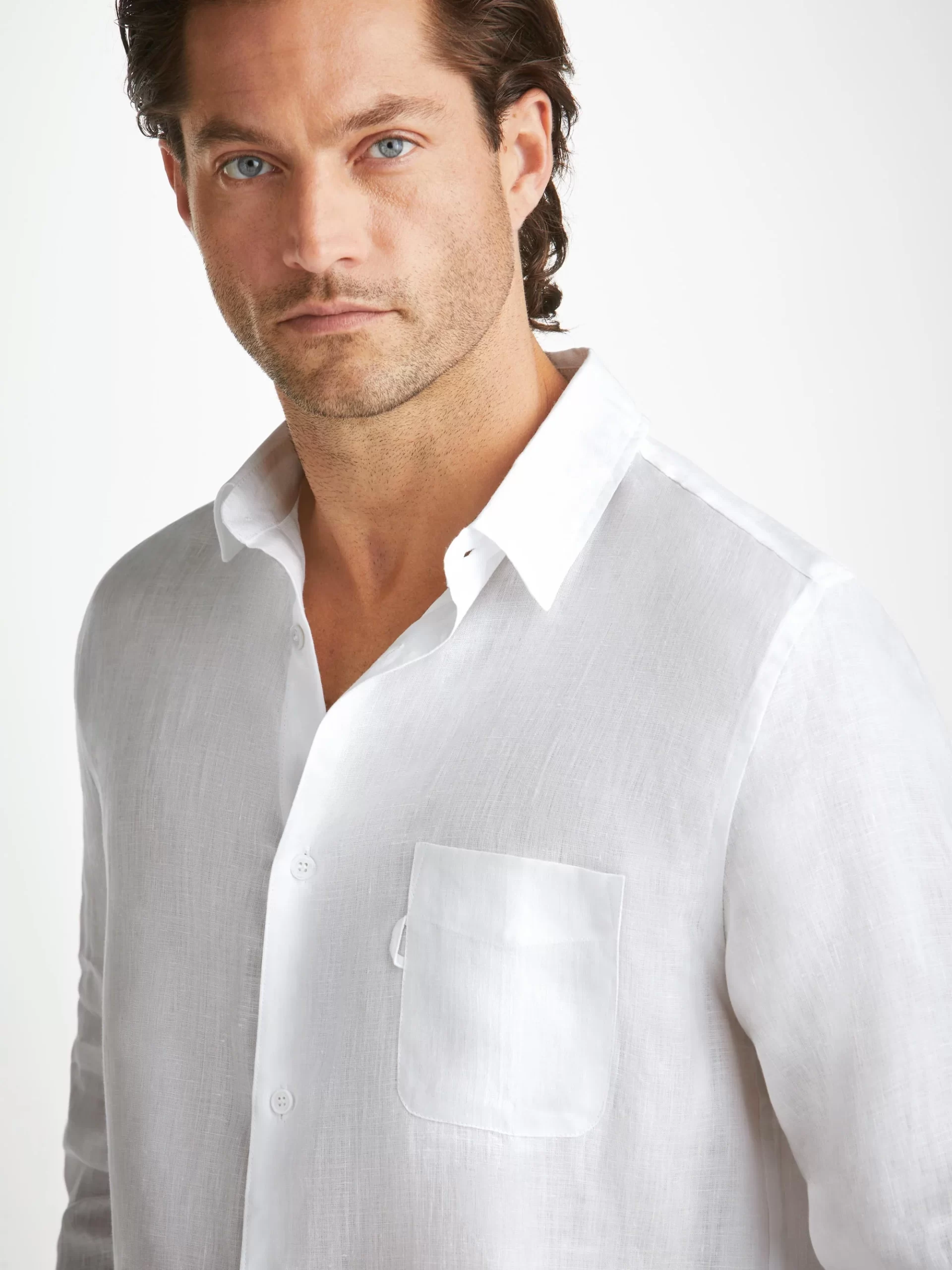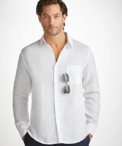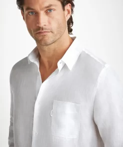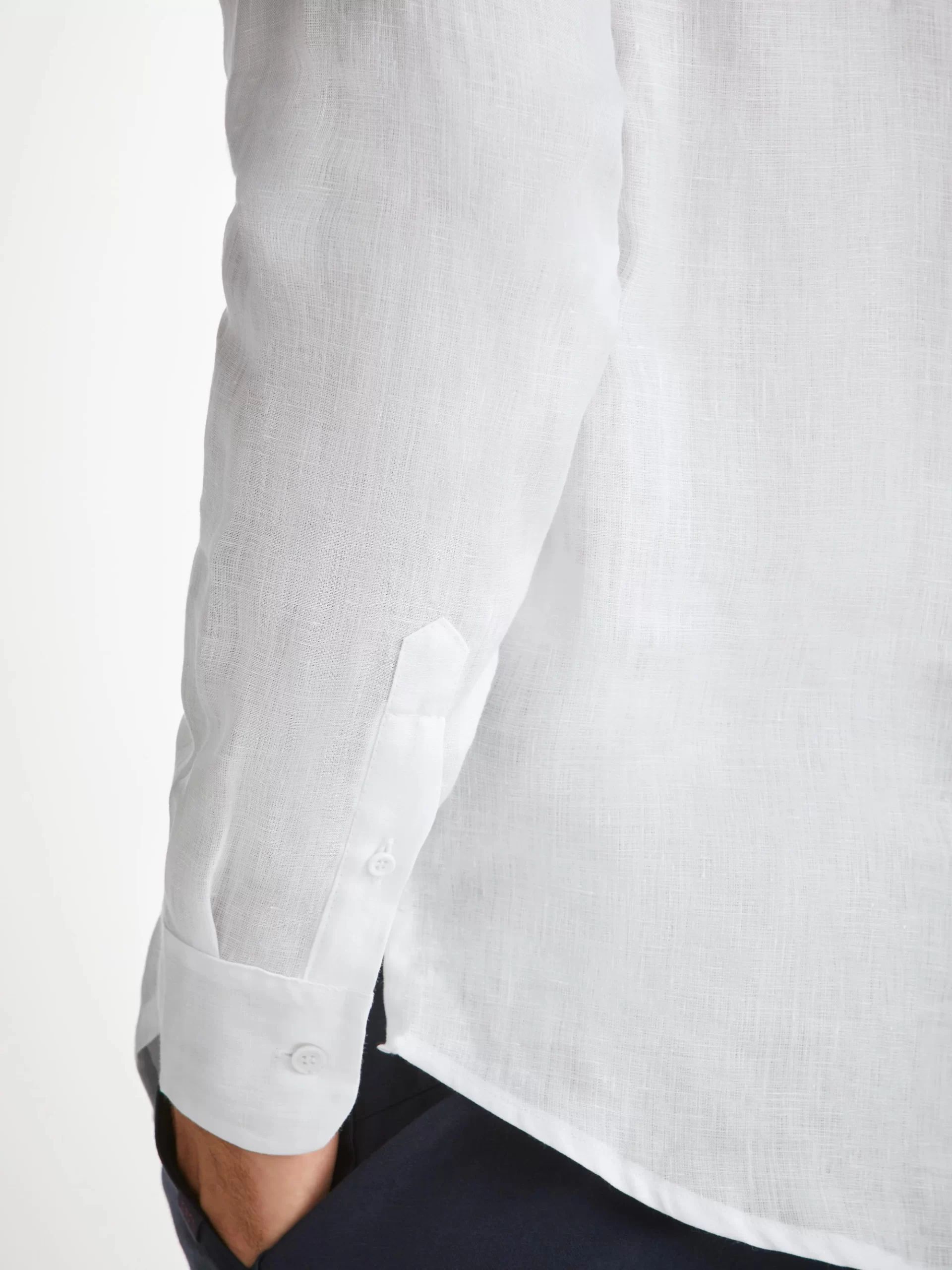 DEREK ROSE Men’s Shirt Monaco Linen White White | MENS- Gifts for Him