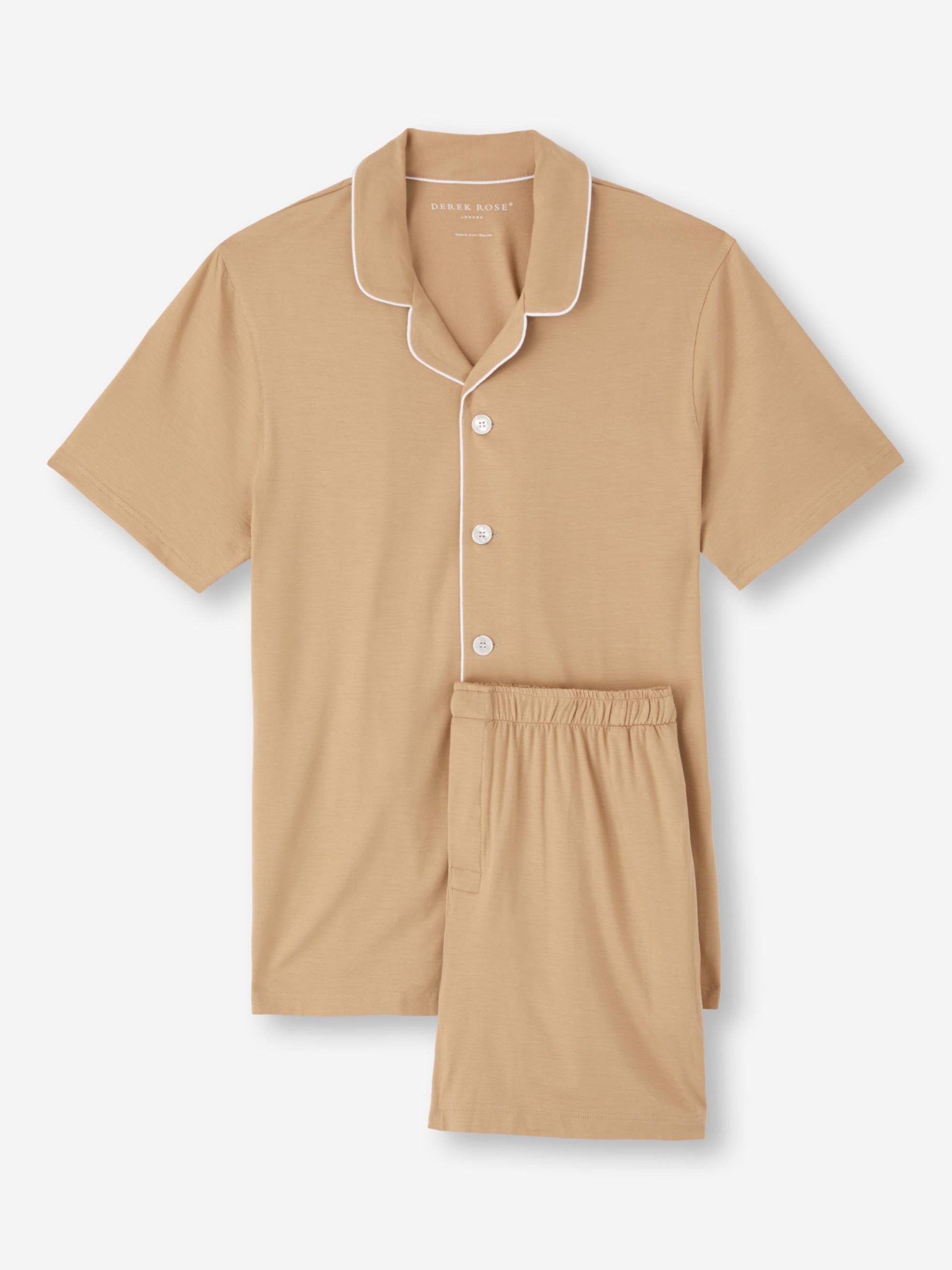 DEREK ROSE Men’s Short Pajamas Basel Micro Modal Stretch Camel Camel | MENS- Pajamas
