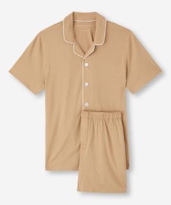 DEREK ROSE Men’s Short Pajamas Basel Micro Modal Stretch Camel Camel | MENS- Pajamas