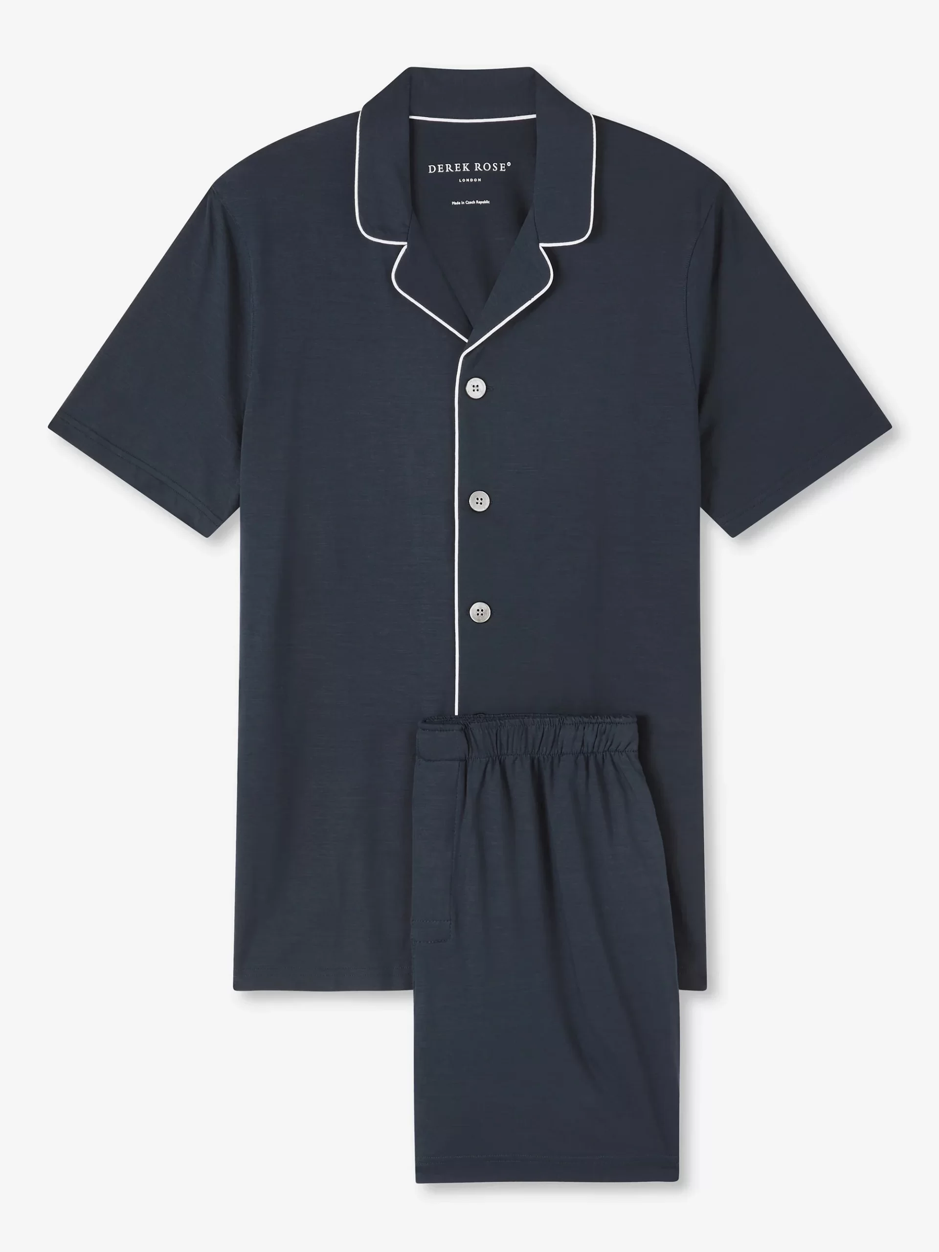 DEREK ROSE Men’s Short Pajamas Basel Micro Modal Stretch Navy Navy | MENS- Pajamas