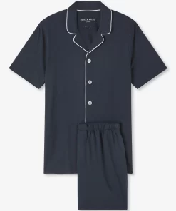 DEREK ROSE Men’s Short Pajamas Basel Micro Modal Stretch Navy Navy | MENS- Pajamas