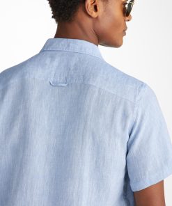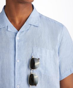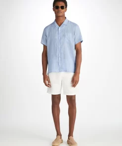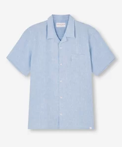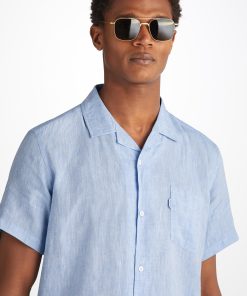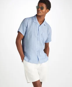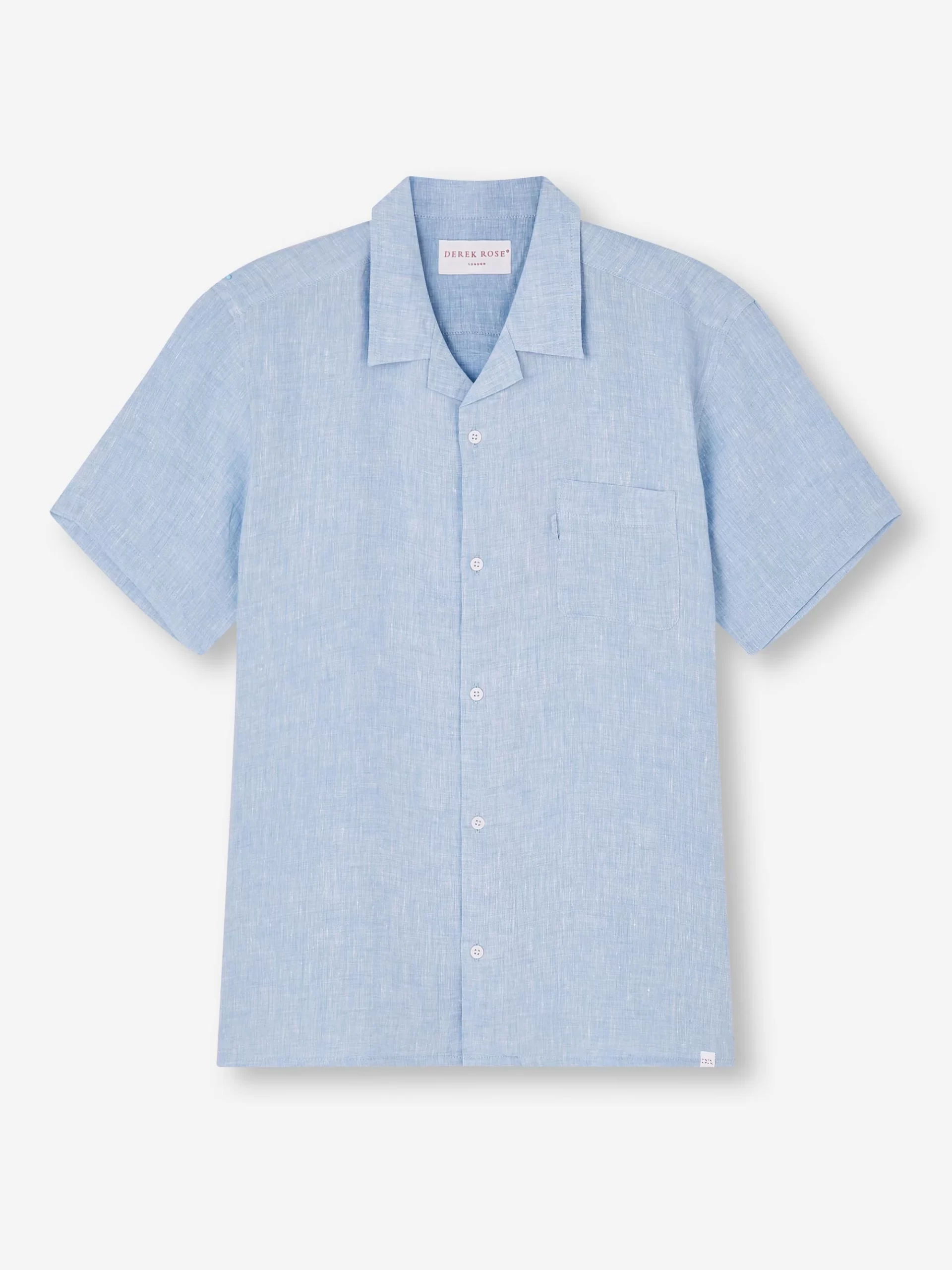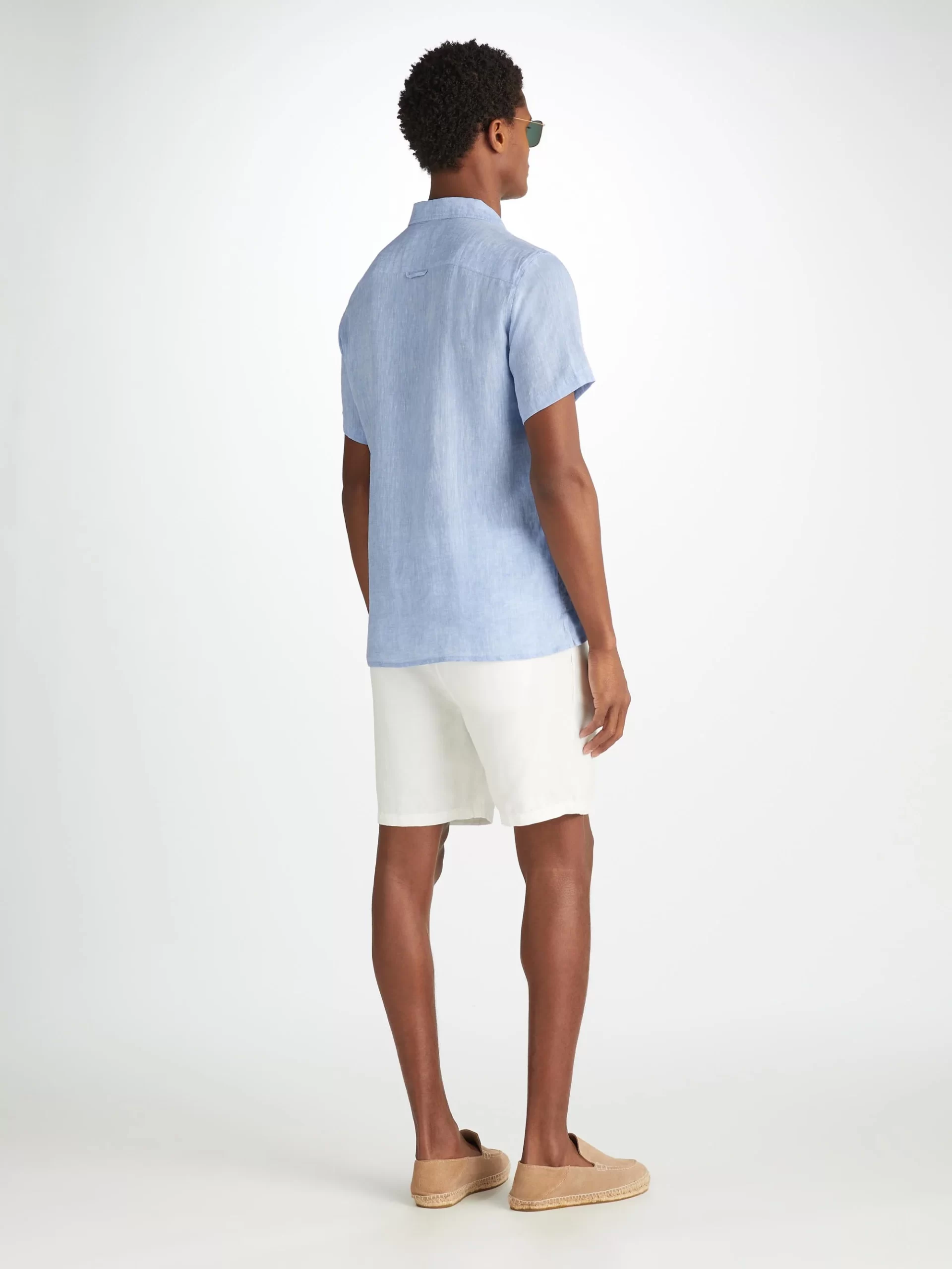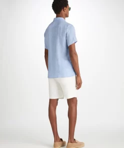 DEREK ROSE Men’s Short Sleeve Shirt Monaco Linen Blue Light Blue | MENS- Gifts for Him