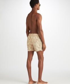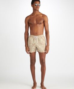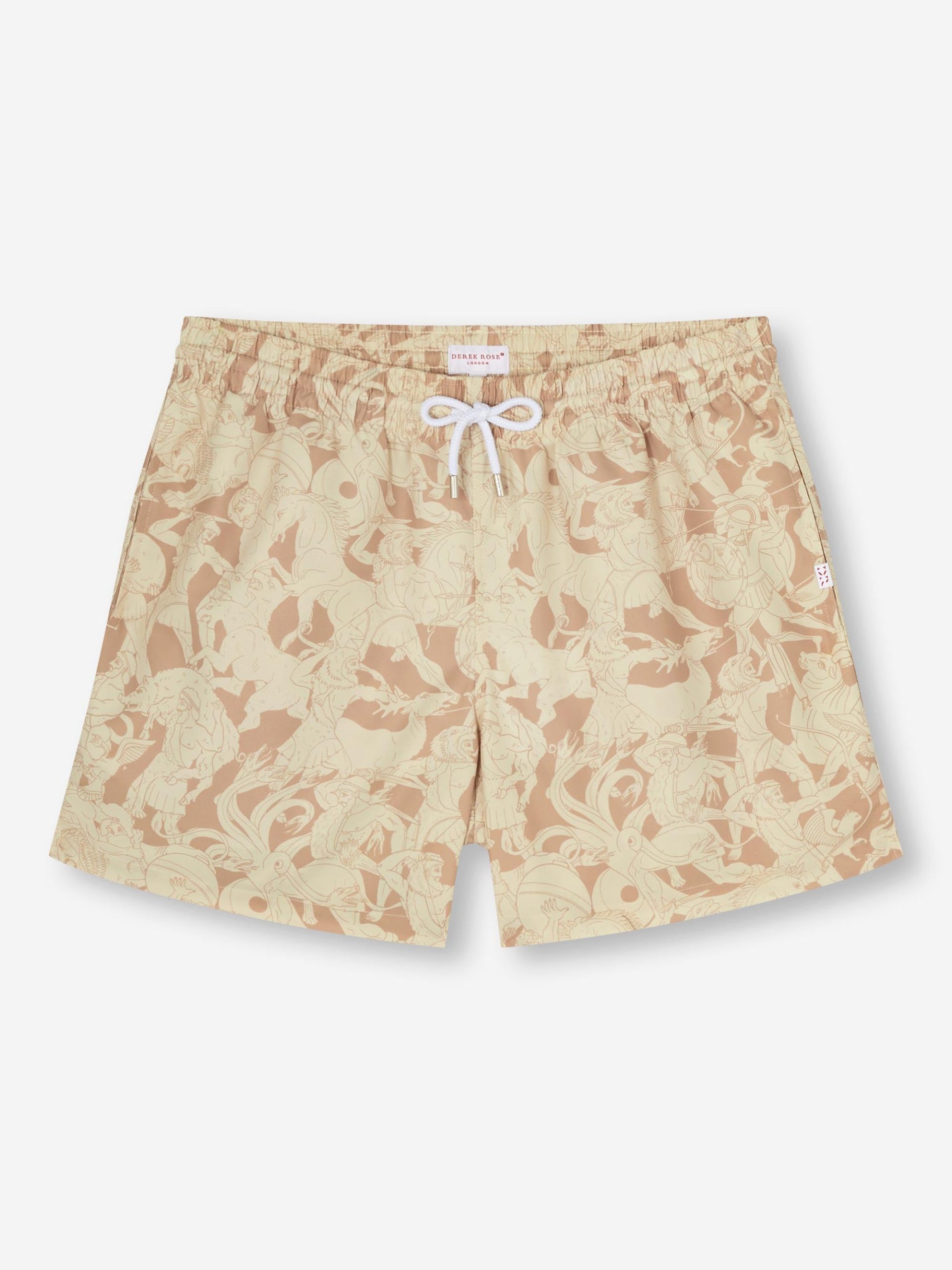 Designed for a relaxed look, our sand toned print depicts the 12 Labours of Hercules, classic style swimming trunk has a fully elasticated waistband and drawstring tie for the perfect fit. The braided drawstring ends are complemented with metal aglets for a luxe finish and the back of the swim shorts feature matching metal eyelets for easy air and water drainage.