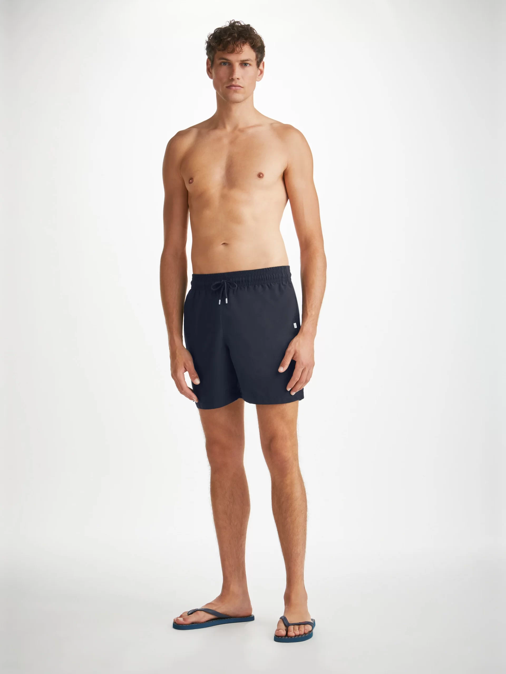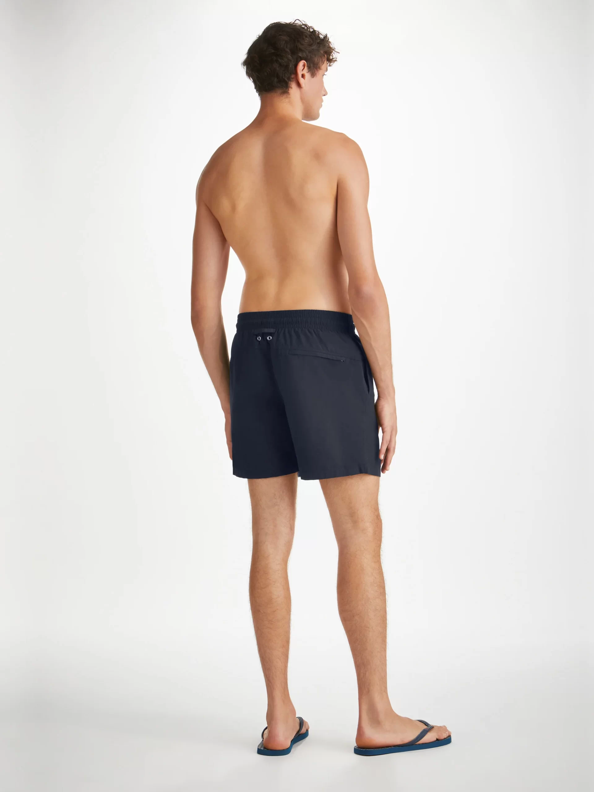 Designed for a relaxed look, our classic style swimming trunk has a fully elasticated waistband and drawstring tie for the perfect fit. The braided drawstring ends are complemented with metal aglets for a luxe finish, and the back of the swim shorts feature cotton stitched eyelets
