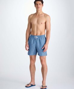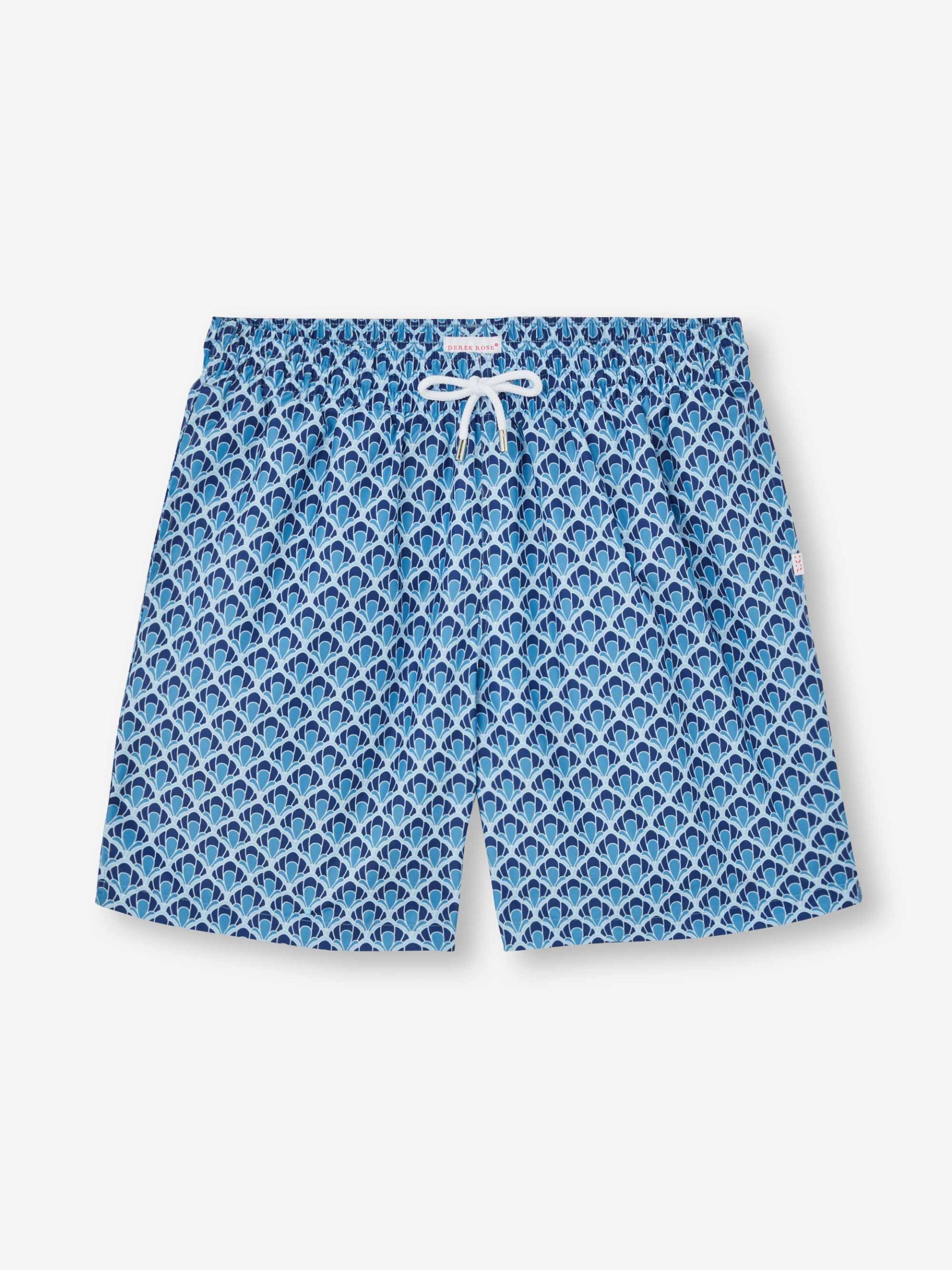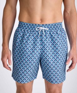 DEREK ROSE Men’s Swim Shorts Mid Blue Scalloped Leaf Print Mid Blue | MENS- Swim Shorts