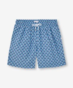 DEREK ROSE Men’s Swim Shorts Mid Blue Scalloped Leaf Print Mid Blue | MENS- Swim Shorts