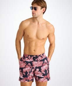 This classic style swimming trunk has a fully elasticated waistband and drawstring tie for the perfect fit. The braided drawstring ends are complemented with metal aglets for a luxe finish and the back of the swim shorts features cotton-stitched eyelets for easy air and water drainage.