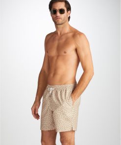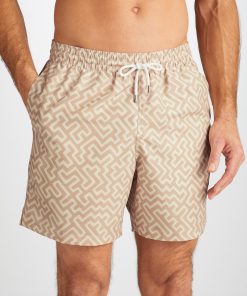 Designed for a relaxed look, Tropez 16 features a sand toned geometric print inspired by the Labyrinth in the Greek myth of Theseus and the Minotaur. This classic style swimming trunk has a fully elasticated waistband and drawstring tie for the perfect fit. The braided drawstring ends are complemented with metal aglets for a luxe finish and the back of the swim shorts features cotton-stitched eyelets for easy air and water drainage.