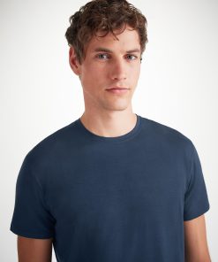 Our signature Basel men’s t-shirt is a wardrobe essential: versatile and classic. Made from a unique blend of stretch micro modal for an extraordinarily soft and comfortable wear, it will quickly become your go-to navy t-shirt. Perfect for sleeping, lounging or making a long-haul flight a lot more bearable.