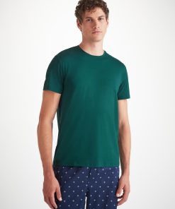 Our signature Basel men’s t-shirt in pine green is a wardrobe essential: versatile and classic. Made from a unique blend of stretch micro modal for an extraordinarily soft and comfortable wear, it will quickly become your go-to t-shirt. Perfect for sleeping, lounging or making a long-haul flight a lot more bearable.