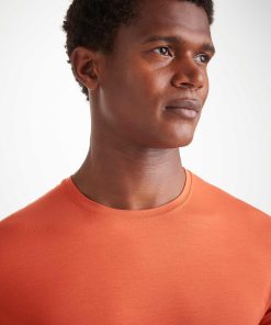 Our signature Basel men’s t-shirt in spiced orange is a wardrobe essential: versatile and classic. Made from a unique blend of stretch micro modal for an extraordinarily soft and comfortable wear, it will quickly become your go-to t-shirt. Perfect for sleeping, lounging or making a long-haul flight a lot more bearable.