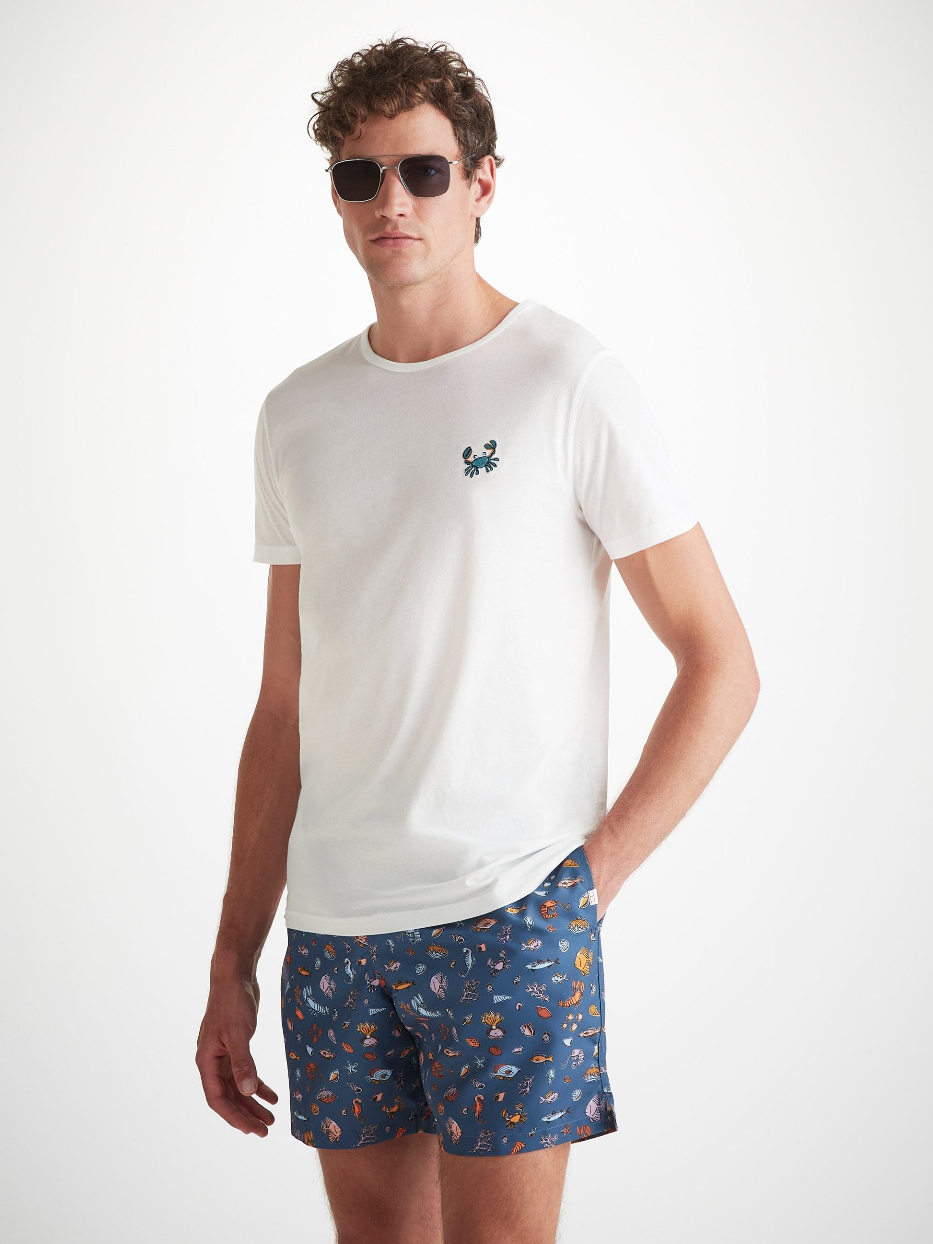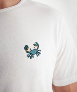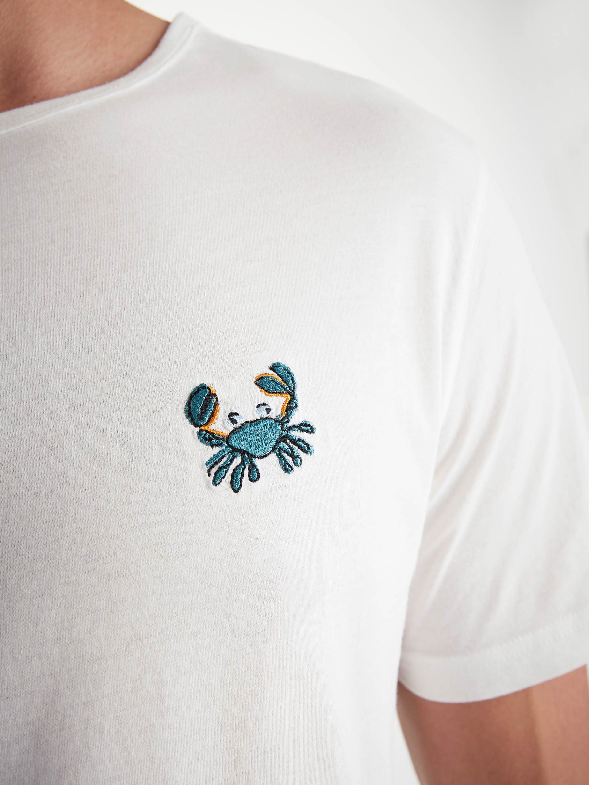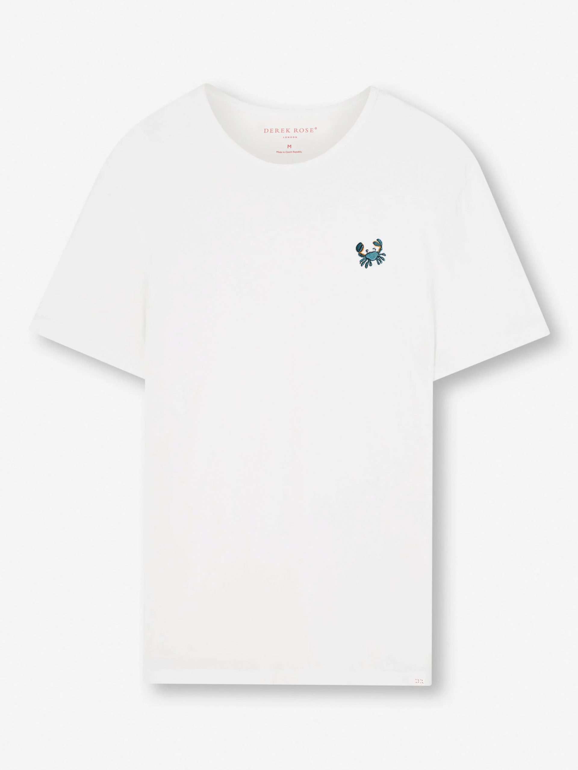 Add a jovial touch to your white t-shirt with our embroidered crab motif. Added by our skilled seamstresses in our studio in Cheshire, England, enjoy our coastline themed collection on our soft pima cotton white t-shirt.