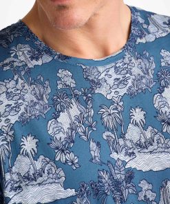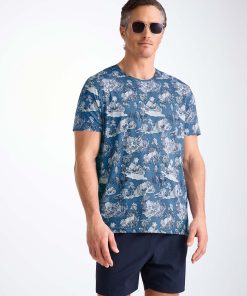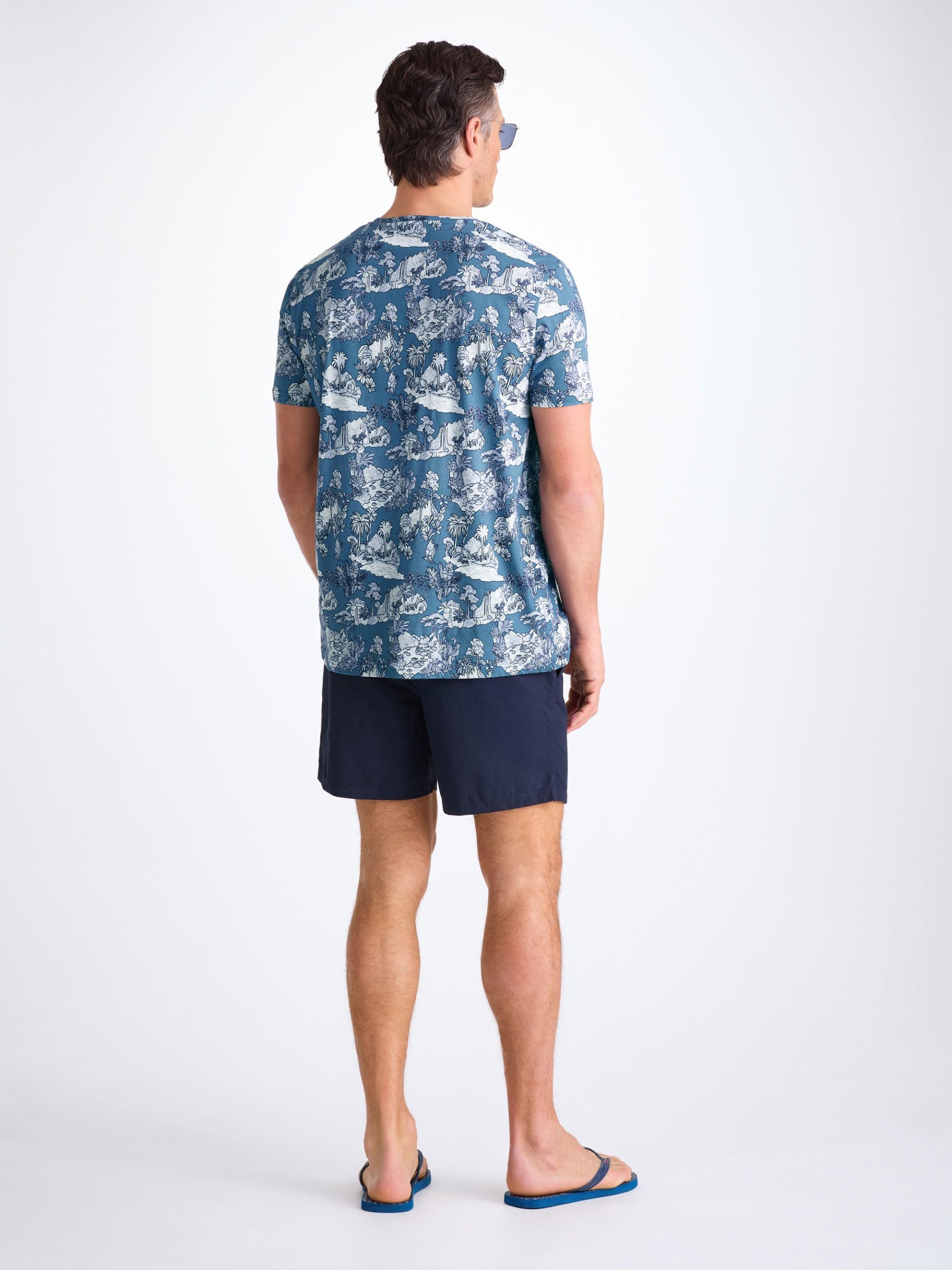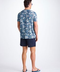 We have focused on uniting beautiful, inspirational designs with our market-leading technical approach for our resortwear range. Featuring our blue island hopping print; a modern interpretation of a toile du jouy. Filled with tropical trees and plant life, it features a tropical bird flying in between islands.